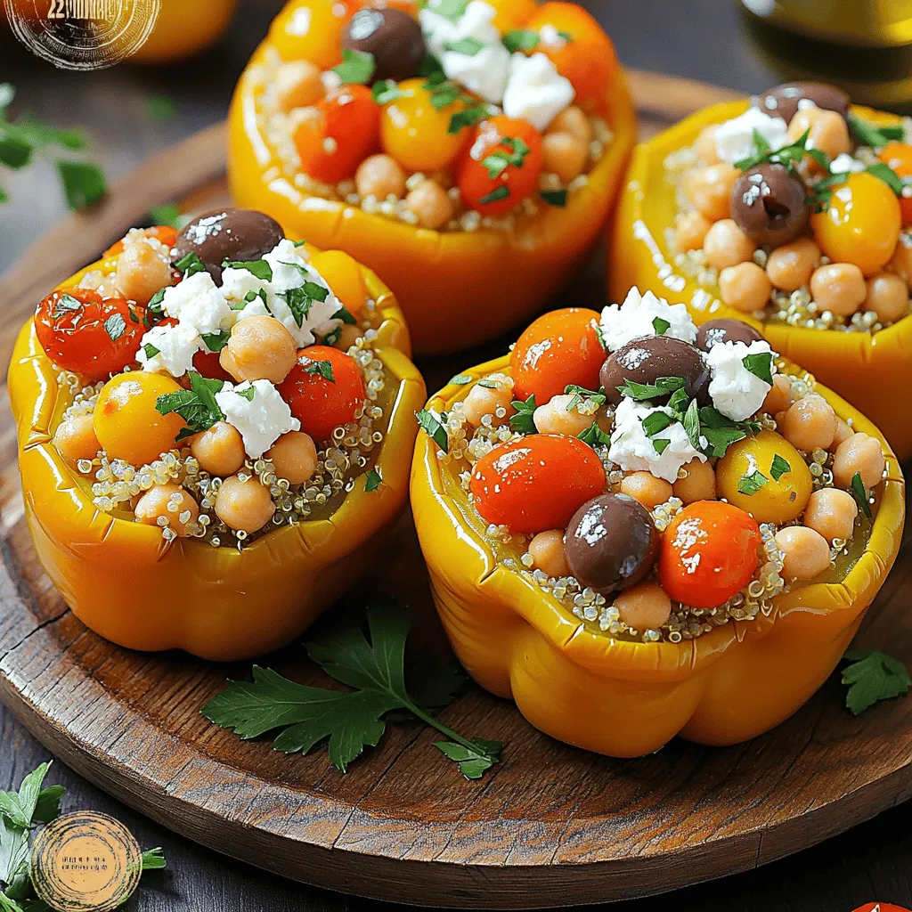 To make your Mediterranean stuffed peppers pop, use a mix of colored peppers. Red, yellow, and green peppers add a fun look. Adjust the seasonings to fit your taste. You may want more garlic or a pinch of salt. Taste as you go to get it just right.