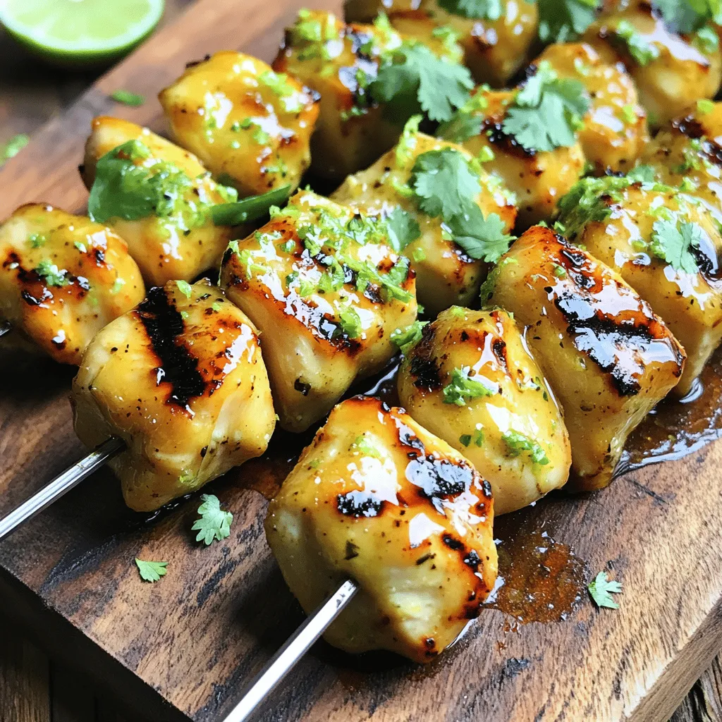 After grilling, remove the skewers from the grill. Let them rest for a few minutes before serving. This resting time keeps the chicken tender. For a lovely finish, garnish with fresh cilantro leaves. They add a burst of color and flavor. Enjoy your Honey Lime Chicken Skewers!