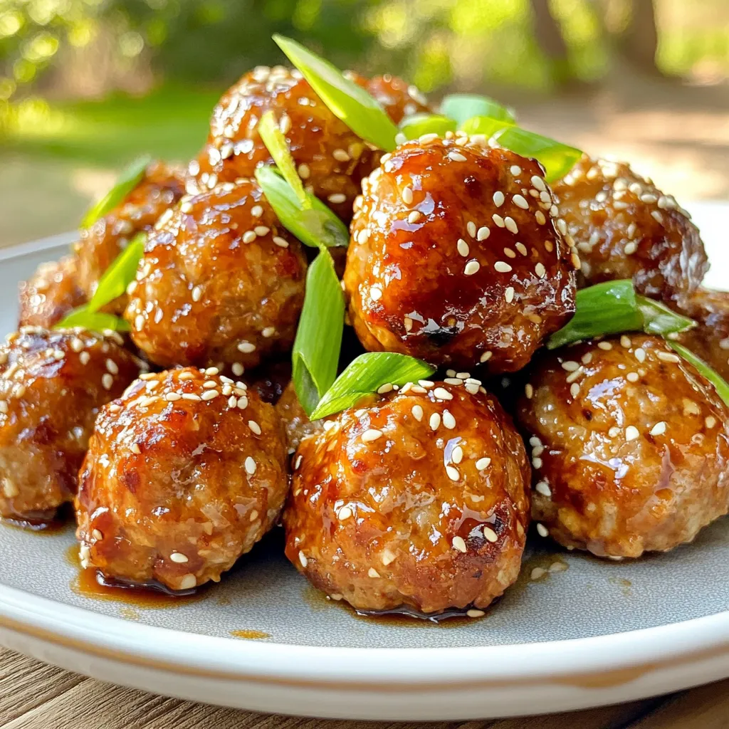 These ingredients create a base for the meatballs. Ground chicken is lean and tasty. The breadcrumbs help hold everything together. The green onions add a fresh crunch. Garlic and ginger bring lots of flavor. Soy sauce and honey balance salty and sweet. Sesame oil gives a nutty taste. Black pepper and salt enhance the overall flavor. Finally, teriyaki sauce adds a glossy glaze.