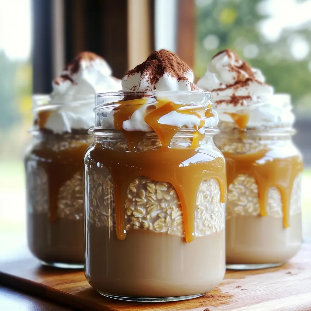 Serve your oats in clear jars. This makes the layers visible and adds a fun touch. For garnishes, a sprinkle of cocoa powder or instant coffee granules can enhance the look. You can also drizzle more caramel sauce on top for extra flavor and flair.