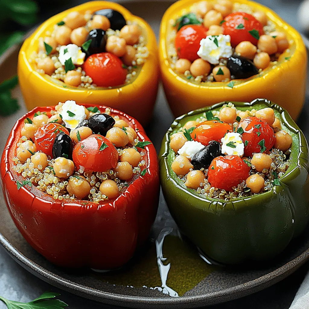 - 4 large bell peppers (any color) - 1 cup cooked quinoa - 1 cup canned chickpeas, rinsed and drained - 1 cup cherry tomatoes, halved - 1/2 cup feta cheese, crumbled - 1/4 cup black olives, chopped - 2 tablespoons olive oil - 1 tablespoon lemon juice - 1 teaspoon dried oregano - 1 teaspoon garlic powder - Salt and pepper to taste - Fresh parsley for garnish To make these stuffed peppers, you need fresh and vibrant ingredients. Start with four large bell peppers. They can be red, yellow, or green. Each color brings a unique taste and look to the dish. Next, you’ll want to include a cup of cooked quinoa. This adds a hearty base and great texture. Quinoa is a superfood, packed with protein. You will also need a cup of canned chickpeas. Rinse them well to get rid of excess sodium. Chickpeas add a nice bite and boost the fiber content. Now, let’s add some color and flavor! Chop one cup of cherry tomatoes in half. They bring sweetness and juiciness to the mix. For the creamy element, use half a cup of crumbled feta cheese. This cheese gives a tangy flavor that pairs well with the other ingredients. Don't forget the black olives! A quarter cup, chopped, adds a briny depth that enhances the dish. To bring everything together, we need a few seasonings. Use two tablespoons of olive oil to keep things moist. A tablespoon of lemon juice adds brightness. One teaspoon of dried oregano gives a classic Mediterranean touch. One teaspoon of garlic powder adds warmth and depth. Season with salt and pepper to your taste. Finally, fresh parsley makes for a beautiful garnish. It adds a pop of color and a fresh taste. Now you're ready to create a delicious meal! First, preheat your air fryer to 350°F (175°C). This step warms the air fryer so it cooks evenly. Next, take your bell peppers and cut the tops off. Remove the seeds and membranes inside. This makes space for your tasty filling. In a large bowl, mix together the cooked quinoa, rinsed chickpeas, halved cherry tomatoes, crumbled feta cheese, and chopped black olives. Add the olive oil, lemon juice, dried oregano, garlic powder, salt, and pepper. Stir until everything blends well. Now it’s time to fill the peppers! Carefully stuff each one with your mixture. Press down gently to pack it in. This ensures you don’t waste any space inside the pepper. Place the stuffed peppers upright in the air fryer basket. If your air fryer is small, you may need to do this in batches. Air fry the peppers for 12-15 minutes. They should be tender and have a nice char on the edges. To get the best peppers, cook them at 350°F (175°C). This temperature gives a nice, tender texture. Air fry for 12-15 minutes. Keep an eye on them. You want them soft but not mushy. If you like a bit of char, leave them in for a few extra minutes. Add more flavor with spices! Try adding a pinch of smoked paprika for warmth. A dash of cumin can give a nice twist. You can also toss in some fresh herbs like basil or thyme for extra zest. Don’t forget to taste as you mix. Adjust salt and pepper to suit your palate. Make your dish pop! Serve the stuffed peppers on a bright plate. Drizzle some olive oil on top for shine. Crumble extra feta over the peppers for a nice touch. Finish with fresh parsley for a splash of color. These small details make a big difference in how the dish looks! {{image_2}} You can mix it up by using other grains. Try brown rice or farro instead of quinoa. If you want a protein boost, add cooked chicken or turkey. For a heartier option, mix in some ground beef or lamb. Each choice brings unique flavors and textures. You can even use lentils for a nutty twist. Be creative with your fillings and have fun! To make this dish fully plant-based, simply skip the feta cheese. Instead, use a vegan cheese or avocado for creaminess. The chickpeas and quinoa keep the dish filling. You can add more veggies like zucchini or spinach for extra nutrients. A sprinkle of nutritional yeast can also add a cheesy flavor without dairy. This way, everyone can enjoy a tasty meal! If you like spice, add some chili flakes or diced jalapeños. You can mix hot sauce into the stuffing for an extra kick. Adjust the heat to suit your taste buds. For milder flavors, stick with sweet peppers and skip the spice. This recipe is flexible, so you can cater to everyone’s preferences! To keep your stuffed peppers fresh, place them in an airtight container. Make sure they cool first. Store them in the fridge for up to four days. Use parchment paper to separate layers if stacking. This keeps them from sticking together. To freeze your stuffed peppers, first let them cool completely. Wrap each pepper in plastic wrap. Then, place them in a freezer-safe bag. Remove as much air as possible. They can last up to three months in the freezer. When ready to eat, thaw overnight in the fridge. For reheating, use your air fryer for the best results. Heat it to 350°F (175°C). Place the peppers in the basket and cook for about 8-10 minutes. You can also reheat them in the microwave. Just cover them with a damp paper towel to keep them moist. This way, they won’t dry out. Yes, you can prepare the stuffed peppers ahead of time. - To do this, make the stuffing and fill the peppers. - You can store them in the fridge for up to 24 hours. - When ready to eat, just air fry them as directed. - This method saves time and keeps the flavors fresh. To keep your peppers from getting soggy, here are some tips: - Choose firm, fresh bell peppers for the best texture. - Avoid overcooking them in the air fryer. - Air fry at 350°F for just 12-15 minutes. - Ensure the stuffing is not too wet before filling. - Let them cool slightly before serving to hold their shape. Yes, you can cook these stuffed peppers in a conventional oven. - Preheat your oven to 375°F (190°C). - Place the stuffed peppers in a baking dish. - Add a little water to the dish to create steam. - Cover the dish with foil and bake for 30-35 minutes. - Remove the foi