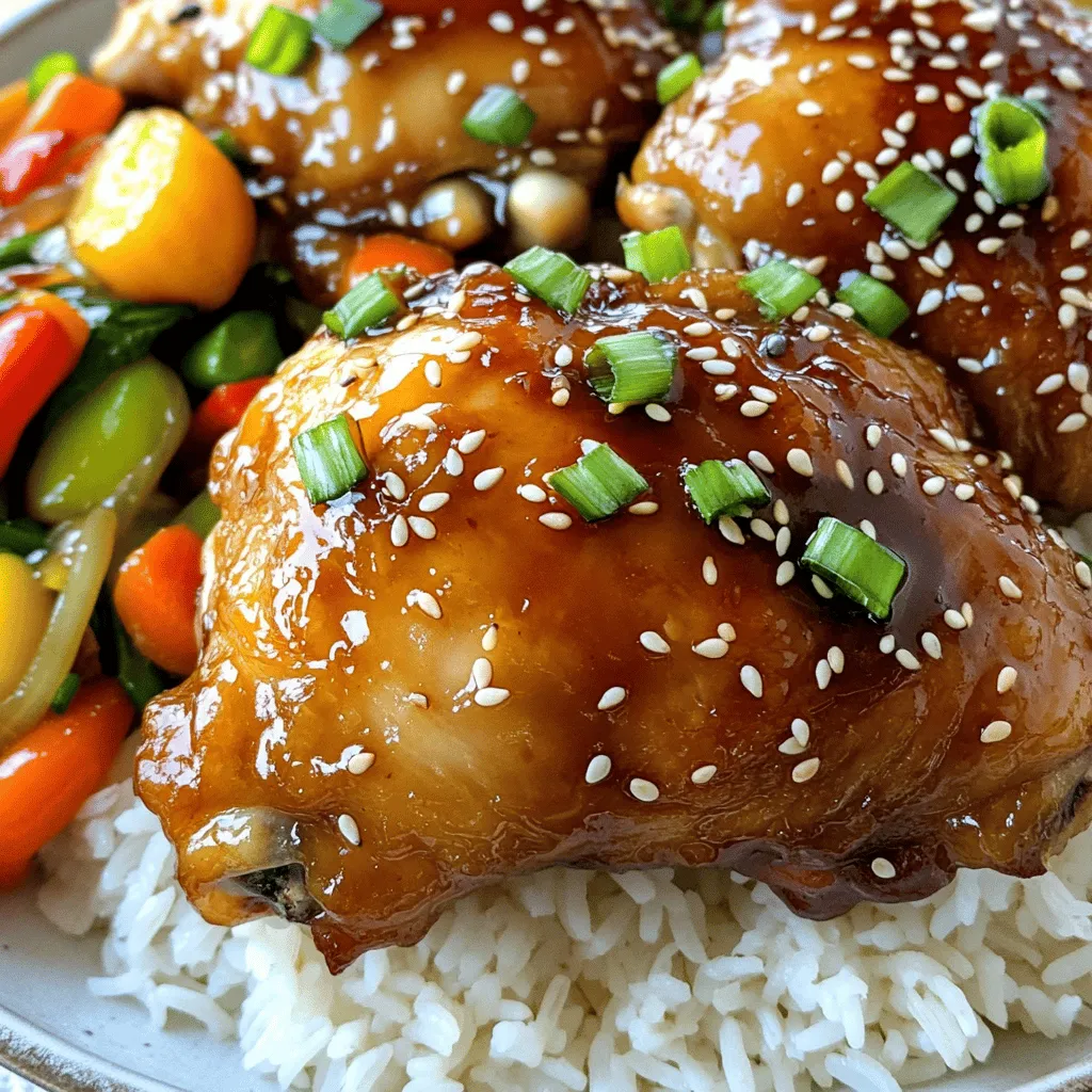 ![- 4 boneless, skinless chicken thighs - 1/2 cup soy sauce - 1/4 cup honey - 1/4 cup rice vinegar - 2 tablespoons sesame oil - 2 cloves garlic, minced - 1 teaspoon fresh ginger, grated The main ingredients are very important. Each one adds unique flavor to the dish. Chicken thighs keep the meat juicy. Soy sauce gives a salty taste. Honey adds sweetness, while rice vinegar brings a nice tang. Sesame oil adds a nutty flavor, and garlic and ginger boost the aroma. - 1/4 teaspoon black pepper - 1/2 teaspoon red pepper flakes (optional, for heat) - 1 tablespoon sesame seeds (for garnish) - 2 green onions, sliced (for garnish) Optional ingredients let you customize your dish. Black pepper adds warmth, and red pepper flakes can spice things up. Sesame seeds and green onions make the chicken look nice when serving. - Alternatives for soy sauce: tamari or coconut aminos - Sweeteners other than honey: maple syrup or agave If you need to change some ingredients, that’s easy! Tamari or coconut aminos are great for a gluten-free option. If you want a different sweetener, maple syrup or agave works well. You can still enjoy the same tasty teriyaki flavor with these swaps. For the full recipe, check out the link above. - Preheat your oven to 400°F (200°C). - In a mixing bowl, whisk together: - 1/2 cup soy sauce - 1/4 cup honey - 1/4 cup rice vinegar - 2 tablespoons sesame oil - 2 cloves garlic, minced - 1 teaspoon fresh ginger, grated - 1/4 teaspoon black pepper - 1/2 teaspoon red pepper flakes (optional) - Place 4 boneless, skinless chicken thighs in a large baking dish. - Coat the chicken thighs with the teriyaki sauce you just made. - Cover the baking dish with aluminum foil. - Bake for 25 minutes. - After 25 minutes, remove the foil. - To thicken the sauce, mix 1 tablespoon cornstarch with 2 tablespoons water in a small bowl. - Simmer the remaining sauce in a small saucepan. - Add the cornstarch mixture until it thickens. - Brush the thickened sauce back over the chicken. - Bake uncovered for an additional 15-20 minutes, until the chicken reaches 165°F (74°C). - Let the chicken rest for a few minutes before serving. - Garnish with sesame seeds and sliced green onions. For all the details, check the Full Recipe. For the best flavor, marinate your chicken for at least 30 minutes. If you have time, let it sit for a few hours or overnight. This allows the meat to soak up all the tasty goodness. Adjust sweetness by adding more honey or using less. If you like spice, add more red pepper flakes to the marinade. To keep your chicken moist while baking, cover the dish with foil for the first part of baking. This traps steam and helps cook the chicken evenly. For a golden finish, remove the foil in the last 15 minutes of baking. Brush on thickened sauce to help caramelize the glaze. Serve Baked Teriyaki Chicken over jasmine rice. Add some sautéed broccoli or snap peas on the side for color. For a nice touch, sprinkle extra sesame seeds and sliced green onions on top. This adds crunch and makes the dish look great! You can find the full recipe for all the details. {{image_2}} You can make Baked Teriyaki Chicken even healthier. Using skinless chicken breast is a great choice. This cut has less fat and more protein. You can also try low-sodium soy sauce. It helps cut back on salt while keeping that tasty flavor. To kick up the flavor, add fruits like pineapple or mango. These fruits give a yummy sweetness. You can also mix in different herbs or spices. Ginger, basil, or chili flakes can change the taste. Experimenting with flavors keeps your meals fun and exciting! Want to try a different cooking method? Use a slow cooker for tender chicken. Just mix the sauce, add chicken, and let it cook. Another fun option is grilling. Grilling gives a nice charred finish. Make sure to marinate the chicken first for the best flavor. For the full recipe, check out the [Full Recipe]. To keep your Baked Teriyaki Chicken fresh, store it in the fridge. Use airtight containers to prevent moisture loss. It’s best to let the chicken cool before sealing it. This way, it stays juicy and tasty. You can keep it for up to four days in the fridge. This makes it easy to enjoy later. For longer storage, you can freeze your Baked Teriyaki Chicken. First, let it cool completely. Then, wrap it tightly in plastic wrap or place it in a freezer-safe container. Make sure to remove as much air as possible. This helps prevent freezer burn. You can freeze it for up to three months. When you're ready to eat, thaw it in the fridge overnight. This method helps keep the chicken's texture nice and tender. To reheat your chicken, the oven works best. Preheat it to 350°F (175°C). Place the chicken in a baking dish and cover it with foil. This keeps the moisture in. Heat for about 20 minutes, or until it's warm throughout. You can also use a microwave, but be careful. Heat it in short bursts to avoid drying it out. If you want to keep the flavor strong, drizzle a bit of teriyaki sauce on top before heating. This adds extra taste and keeps it juicy. If you want to try making this dish, look for the Full Recipe. Enjoy! How long should I bake teriyaki chicken? You should bake teriyaki chicken for a total of 40 to 45 minutes. First, bake it covered for 25 minutes. Then, uncover it and bake for another 15 to 20 minutes. This ensures the chicken cooks evenly and stays juicy. Can I use different cuts of chicken? Yes, you can use different cuts. Chicken breast, drumsticks, or wings work well too. Just adjust the baking time based on the thickness of the meat. How do I make the sauce thicker? To thicken the sauce, mix cornstarch with water. Add this mix to the sauce while simmering. Heat it until it thickens to your liking. This gives the sauce a nice, glossy finish. What can I serve with Baked Teriyaki Chicken? Serve Baked Teriyaki Chicken over rice or with noodles. Steamed vegetables, like broccoli or snap peas, make a great side. You can also add a fre