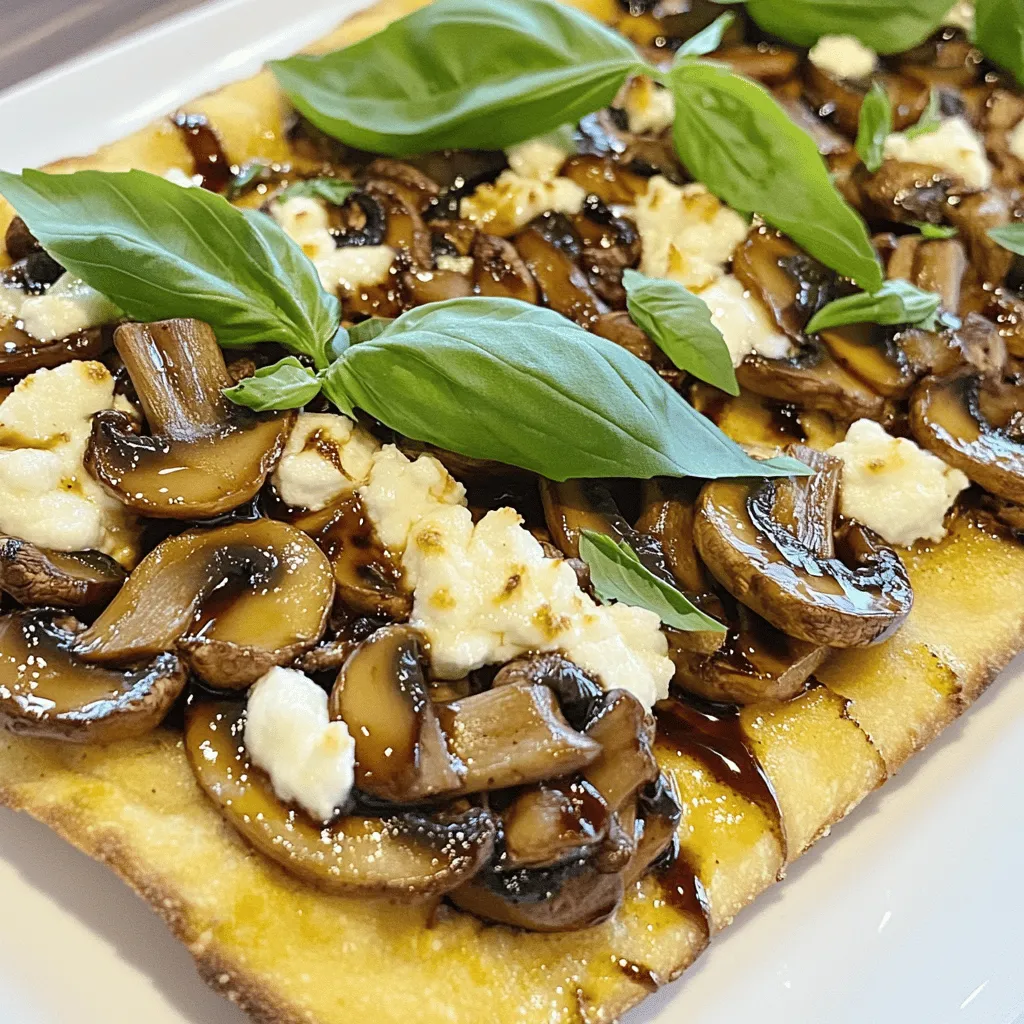 The main ingredients for balsamic mushroom flatbread are simple yet flavorful. A large flatbread or naan serves as the base. You can choose either cremini or shiitake mushrooms. Both add great taste. Olive oil helps cook the mushrooms perfectly.