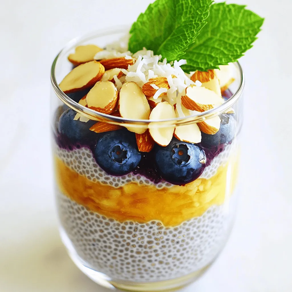 Making a layered parfait is simple and pretty. Start by spooning a layer of blueberry chia pudding into a clear glass. Next, add a layer of fresh blueberries. Then, repeat the layers until you reach the top. Finish with a sprinkle of sliced almonds or coconut. This makes your dessert look fancy and inviting.Enjoy!