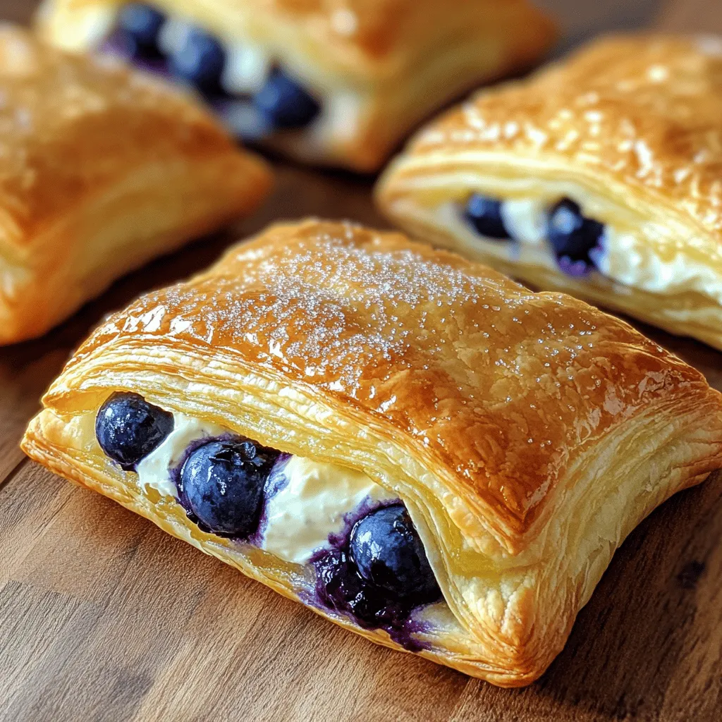 These ingredients create a rich, creamy filling with a burst of fresh blueberries. The puff pastry puffs up perfectly when baked, giving you that flaky texture.