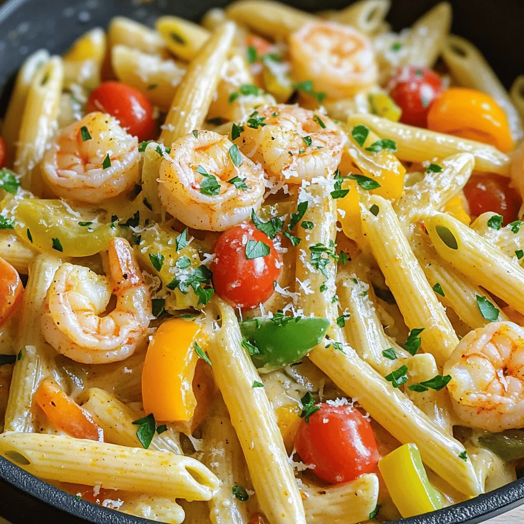 ![To make Cajun shrimp pasta skillet, you need fresh and tasty ingredients. Here’s what you will need: - Pasta and Shrimp Essentials - 8 oz penne pasta - 1 lb large shrimp, peeled and deveined - 1 tablespoon Cajun seasoning - Vegetables and Seasonings - 2 tablespoons olive oil - 1 bell pepper (red or yellow), sliced - 1 medium onion, chopped - 3 cloves garlic, minced - 1 cup cherry tomatoes, halved - Salt and pepper to taste - Cooking Essentials - 1 cup heavy cream - 1 cup chicken broth - Fresh parsley, chopped (for garnish) - Grated Parmesan cheese (optional) These ingredients bring a burst of flavor and color to your dish. Each item plays a key role in making this meal so delightful. The shrimp pairs well with the spices, while the cream and broth create a rich sauce. I love how the fresh vegetables add texture and brightness. You can find the full recipe above to guide you through cooking. To start, boil salted water in a large pot. This helps flavor the pasta. Once it boils, add the penne pasta. Cook it according to the package for about 10 to 12 minutes. You want it to be al dente, which means it’s firm but not hard. After cooking, drain the pasta in a colander and set it aside. Next, let’s season our shrimp. Place the peeled and deveined shrimp in a bowl. Add one tablespoon of Cajun seasoning. Toss the shrimp well so they are fully coated in the spices. This part is crucial for flavor. Let the shrimp marinate for about 10 minutes to soak in the seasoning. Now, choose a large skillet for cooking. Heat two tablespoons of olive oil over medium heat. Once the oil is hot, add the chopped onion and sliced bell pepper. Sauté them for about five minutes. You want them to soften but not brown. After that, add the minced garlic. Cook for one more minute until fragrant. Push the vegetables to one side of the skillet. Add the marinated shrimp to the other side. Cook the shrimp for about 2 to 3 minutes on each side. You will know they are done when they turn pink and opaque. This shows they are fully cooked. Add the halved cherry tomatoes to the skillet next. Pour in one cup of heavy cream and one cup of chicken broth. Stir everything together to mix well. Let this simmer for about 3 to 4 minutes. This helps thicken the sauce and blend the flavors nicely. Finally, add the cooked penne pasta to the skillet. Toss everything together until well mixed. Season with salt and pepper to taste. For plating, serve the pasta hot. Garnish with freshly chopped parsley. You can also sprinkle some grated Parmesan cheese on top if you like. For the full recipe, check the section above. Enjoy your Cajun Shrimp Pasta Skillet! - Best Oil to Use: I recommend olive oil for its flavor and heat tolerance. It adds a nice richness to the dish. You can also use vegetable oil if you prefer a lighter taste. - Avoiding Overcrowding the Skillet: When you sauté, space matters. If you overcrowd the skillet, the shrimp will steam instead of sear. Cook in batches if needed. This helps achieve that perfect golden shrimp. - Substituting Seasonings: Cajun seasoning is key, but you can mix it up. Try adding smoked paprika for a smoky flavor. You can use Italian seasoning for a different twist too. - Adding Extra Ingredients: Feel free to get creative. Spinach or kale adds color and nutrition. You can also toss in some mushrooms for an earthy taste. - Prep Tips for Quick Cooking: Chop all your veggies and shrimp ahead of time. This way, you can cook fast without stopping. Keep everything in separate bowls for ease. - Using Leftovers: If you have extra shrimp or pasta, use them! Toss them into salads or wraps. The flavor from the Cajun seasoning works great in many dishes. {{image_2}} You can switch up the protein in this dish. Chicken or sausage works great! - Chicken: Use boneless chicken breast. Cut it into bite-sized pieces. Cook it in the same way as the shrimp. - Sausage: Try andouille sausage for a classic Cajun touch. Slice it and cook it until browned. For a vegetarian option, use firm tofu or chickpeas. Both will soak up the Cajun flavors well. If you need gluten-free options, choose gluten-free pasta. Many brands offer good taste and texture. Look for brown rice or chickpea pasta. For dairy-free choices, use coconut cream or cashew cream instead of heavy cream. Both options add a nice creaminess without dairy. You can control the heat in this dish. For a mild version, use less Cajun seasoning. Start with half the amount and taste as you go. For more spice, add cayenne pepper or hot sauce. Just a little bit can really kick it up! Adjust your Cajun seasoning based on your taste. Explore the [Full Recipe] for more ideas and tips on customizing your Cajun Shrimp Pasta Skillet. To keep your Cajun shrimp pasta fresh, store it in an airtight container. Make sure to refrigerate it within two hours of cooking. This helps prevent bacteria growth. It will last in the fridge for up to three days. For longer storage, you can freeze it. Just portion it into freezer-safe bags. Press out the air before sealing. This way, it will stay good for about three months. When you're ready to eat, you can reheat it in two ways. The microwave is quick and easy. Just place the pasta in a bowl and cover it with a damp paper towel. Heat on medium power for 2-3 minutes, stirring halfway. You can also use the stovetop. Heat a skillet over medium heat and add a splash of chicken broth. Stir the pasta until warm. This method helps keep the dish creamy. If you want to make things easier, meal prep is key. You can cook the pasta and shrimp ahead of time. Store them separately in the fridge. This way, they stay fresh and do not get soggy. Pack them in individual containers for easy grab-and-go meals. You can also chop the veggies the night before. When you're ready to cook, just toss everything together for a quick meal. For portioning, aim for about one cup per serving. This makes it easy to keep track of your meals. For the full recipe, check the li