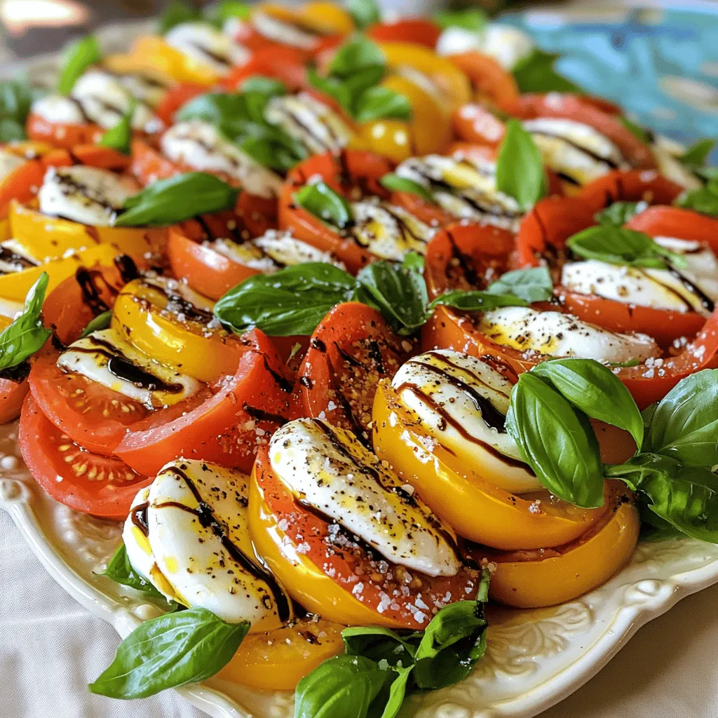 When I make Caprese salad, I focus on fresh, quality ingredients. Each item plays a role in the dish. Ripe tomatoes provide sweetness and juiciness. Fresh mozzarella adds creaminess, while basil gives a fragrant touch. The balsamic glaze brings a sweet-tart flavor that ties everything together.