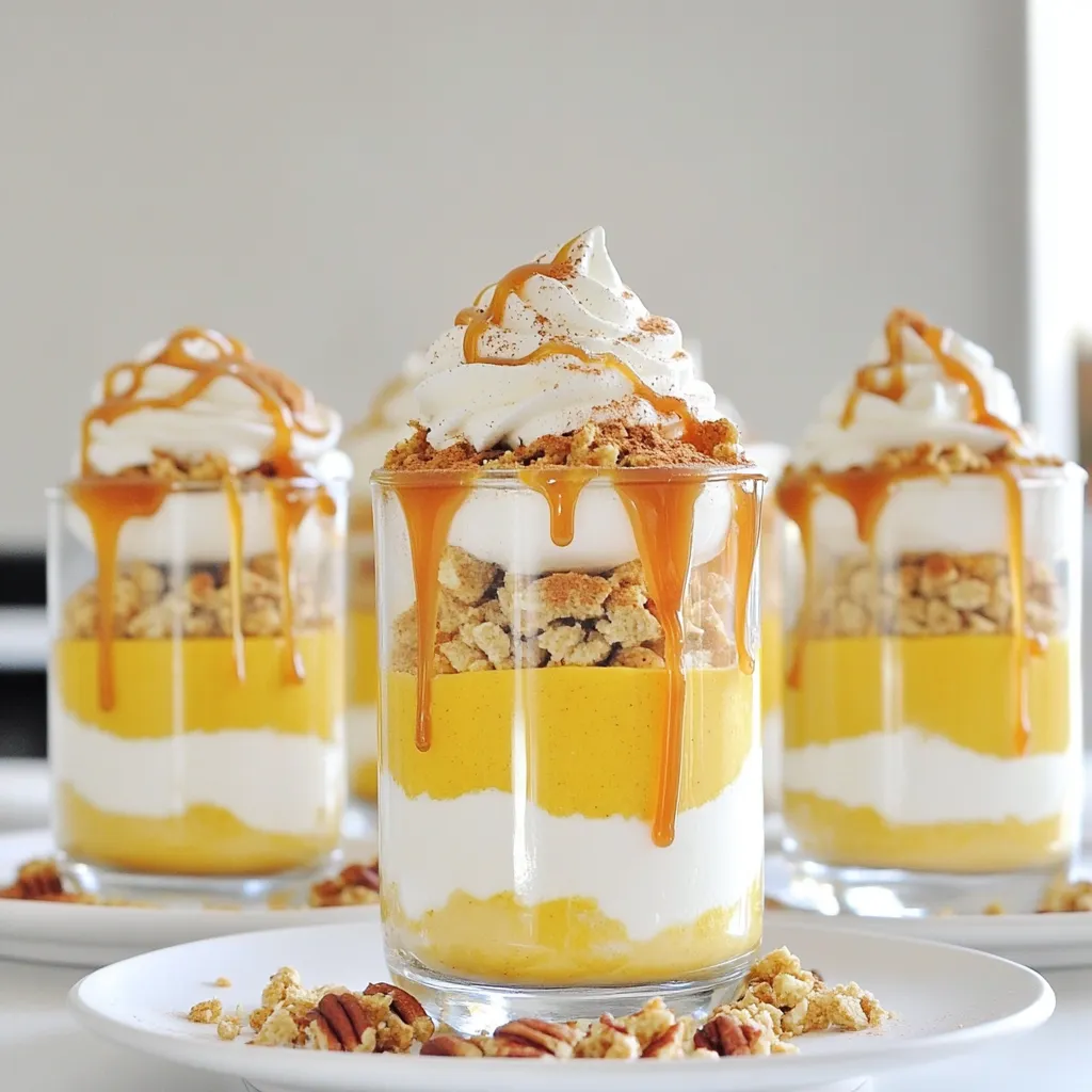 Next, it’s time to layer the parfaits. Grab your serving glasses or jars. Start with a layer of the pumpkin mousse at the bottom. Then, drizzle some caramel sauce over it. After that, add a layer of crushed graham crackers. Repeat these layers until you fill the glass. This creates a beautiful and tasty treat.