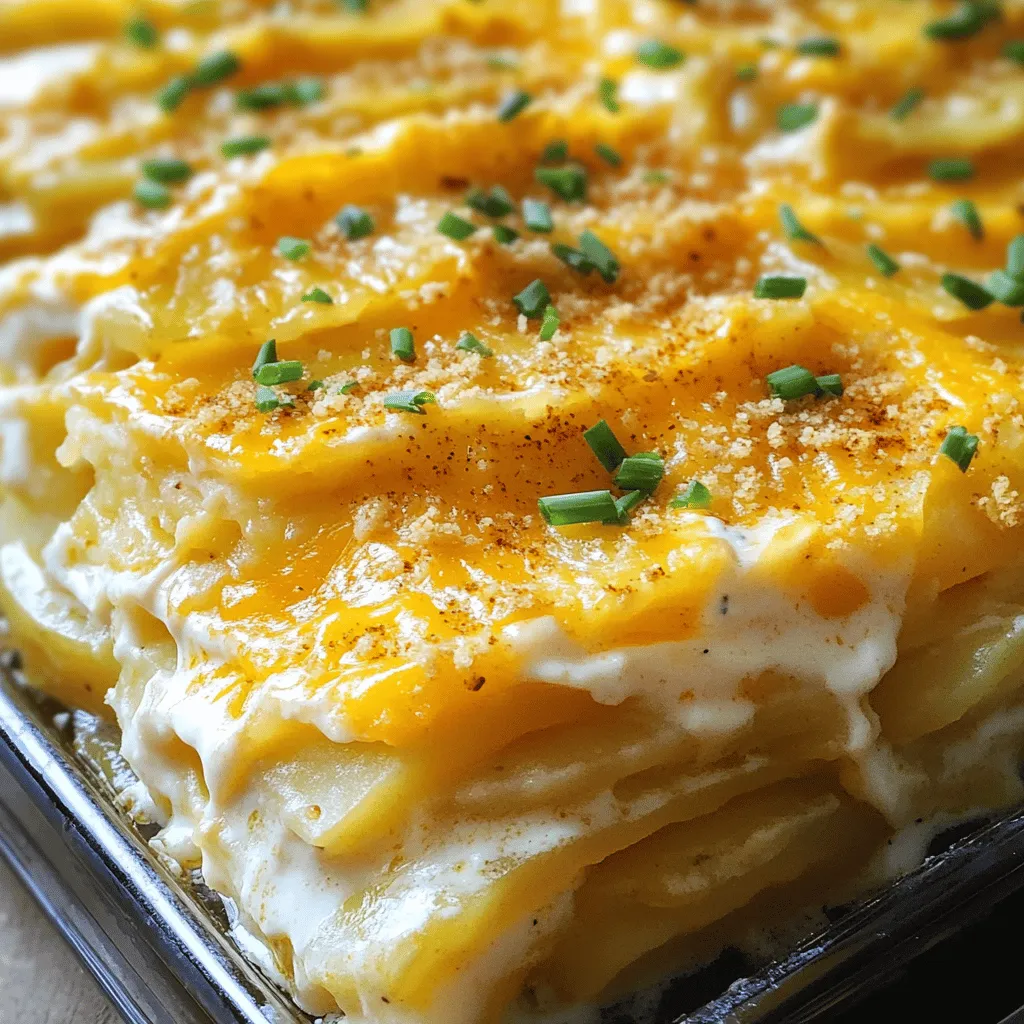 When you gather these ingredients, you set the stage for a creamy, cheesy delight. Each element plays a role in creating a dish that warms the heart. Use fresh potatoes for the best taste. The sharp cheddar adds a rich flavor that pairs perfectly with the cream. The onion and garlic give depth and aroma.