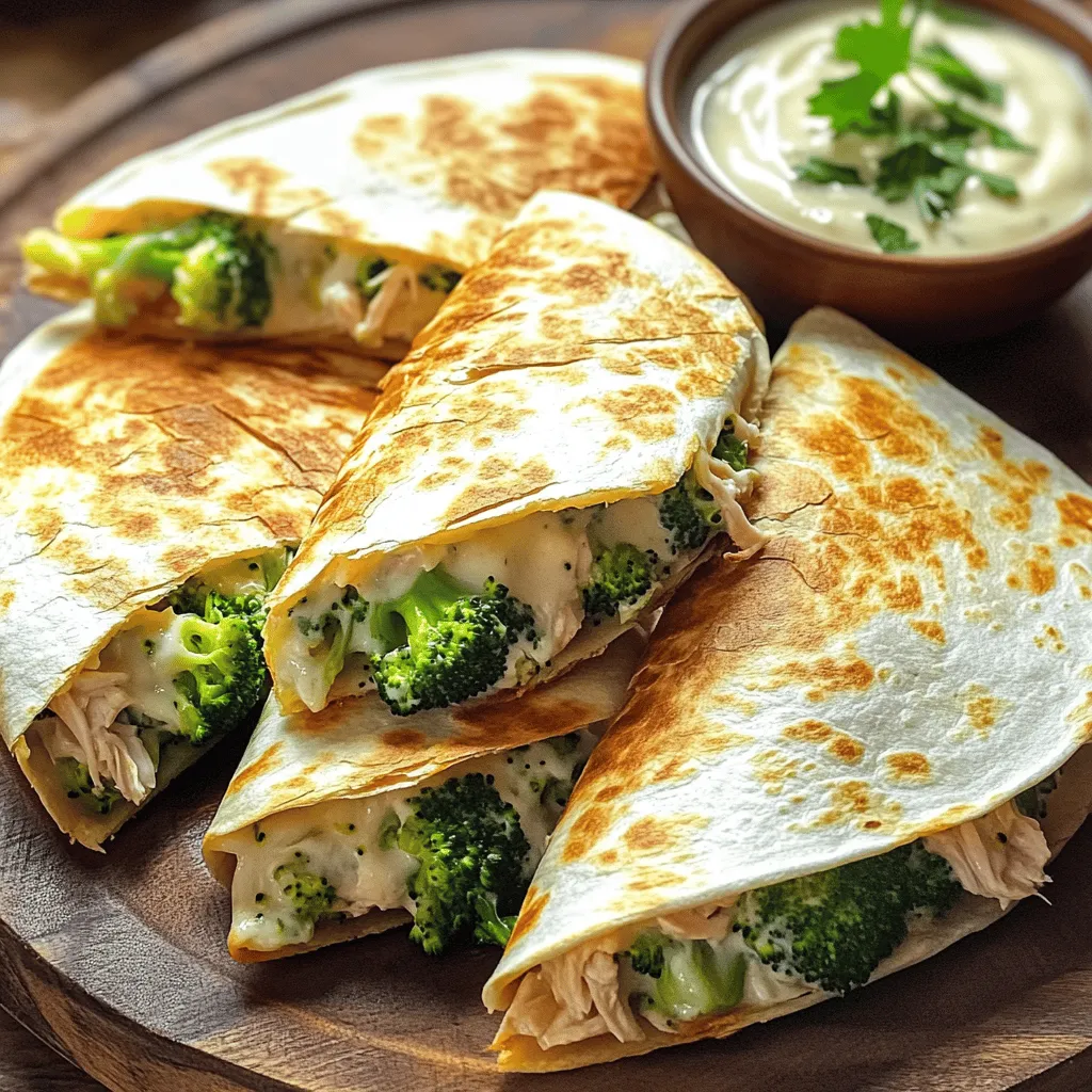 For this Chicken and Broccoli Alfredo Quesadilla, you need simple yet tasty ingredients. Start with cooked chicken, shredded into bite-sized pieces. I love using leftover chicken for this recipe. Next, grab some steamed broccoli florets. Chop them up so they mix well with the chicken. Then, you will need Alfredo sauce. This creamy sauce ties everything together.