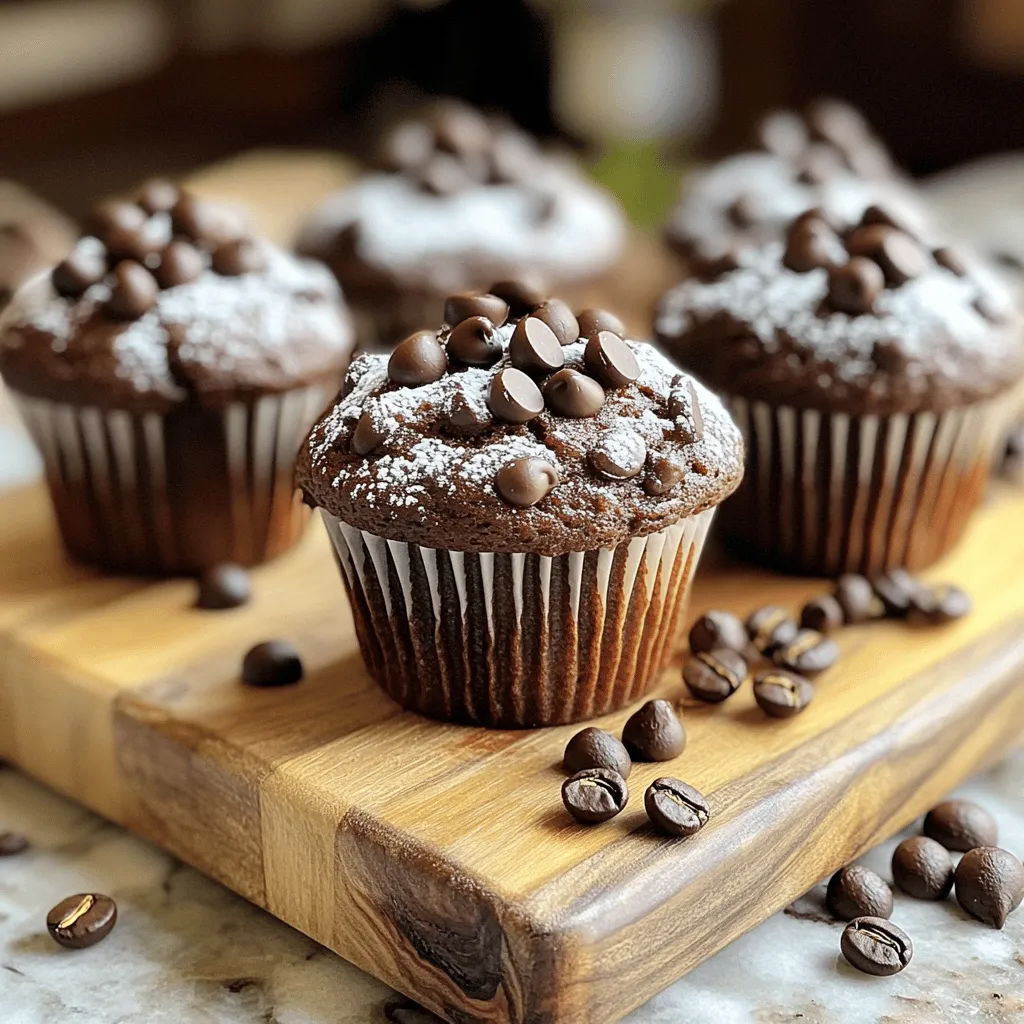 Gather fresh ingredients for the best flavor. Use high-quality cocoa powder for rich taste. Choose semi-sweet chocolate chips to balance the coffee flavor. You can swap milk for a non-dairy alternative like almond or oat milk. If you prefer a stronger coffee taste, use more espresso. Each ingredient plays a key role in creating moist, flavorful muffins. The sugars caramelize and give a nice crust. The eggs provide structure and richness. Keep everything at room temperature for even mixing. This will help you get a perfect batter.