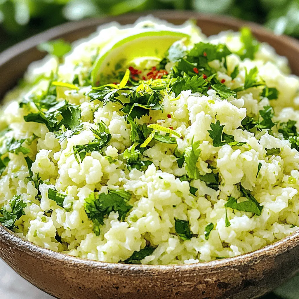 ![- 1 medium head of cauliflower, grated or riced - 2 tablespoons olive oil - 1 clove garlic, minced Cilantro lime cauliflower rice starts with fresh cauliflower. I love using a medium head, as it provides just the right amount. You can either grate it or use a food processor to get that perfect rice-like texture. The olive oil adds a nice richness, while minced garlic brings a punch of flavor. - Zest and juice of 1 lime - 1/4 cup fresh cilantro, chopped - Salt and pepper to taste Lime is the star here. The zest and juice brighten up the dish. Fresh cilantro adds a vibrant touch and balances the flavors. Don't forget to season with salt and pepper to bring everything together. - 1/4 teaspoon cumin - 1/4 teaspoon chili flakes If you want a bit more depth, consider adding cumin. It gives a warm, earthy note. Chili flakes can add some heat if you like spice. These additions are optional, but they can elevate the dish even further. For the full recipe, check out the details above. - Remove leaves and stem - Grate or rice the cauliflower Start by taking a medium head of cauliflower. Carefully remove the green leaves and tough stem. Cut the cauliflower into quarters. Now, you can use a box grater or a food processor. Grate or pulse until it looks like rice. This is your base for the dish. - Heat olive oil in a skillet - Sauté minced garlic Next, grab a large skillet and pour in two tablespoons of olive oil. Heat it over medium heat. Once hot, add one clove of minced garlic. Cook it for about 30 seconds. Watch it closely so it doesn’t burn. You want it fragrant and golden, not brown. - Add riced cauliflower to the skillet - Stir in lime juice and cilantro After the garlic is ready, toss in the riced cauliflower. Stir it well and let it cook for 5 to 7 minutes. You want the cauliflower tender but still crunchy. Once done, take the skillet off the heat. Now, add the zest and juice of one lime, along with 1/4 cup of chopped cilantro. Mix everything until well combined. Add salt and pepper to taste. Enjoy this fresh and zesty side dish! For the full recipe, check out the details. To get the best flavor from your cilantro lime cauliflower rice, always use fresh ingredients. Fresh cauliflower, cilantro, and lime juice make a big difference. If you want a stronger taste, adjust the seasonings based on your preference. You can add more lime juice or salt to create a bolder flavor. To ensure a perfect texture, cook the cauliflower just right. Aim for a slight crunch in each bite. This keeps the dish vibrant and fresh. Also, be careful when cooking garlic. Burning it can ruin the taste. Sauté it for about 30 seconds until fragrant, then add the cauliflower. Cilantro lime cauliflower rice pairs well with proteins. Try it with grilled chicken, shrimp, or tofu for a complete meal. You can also serve it as a healthy side dish. It complements tacos, burritos, or any dish needing a fresh touch. For the full recipe, check out the details above. {{image_2}} You can make cilantro lime cauliflower rice even more exciting. Try adding different herbs like parsley or basil. These herbs add fresh notes that brighten the dish. You can also incorporate spices like smoked paprika. This spice brings a warm, smoky flavor that pairs well with the lime. Experimenting with flavor can lead to new favorites. Cilantro lime cauliflower rice is not just a side dish; it can be a meal. You can use it as a base with various proteins. Grilled chicken, shrimp, or tofu all work great. You can also top it with green onions or a dollop of yogurt. This adds creaminess and a nice crunch. Mixing in your favorite toppings makes it a fun and filling dish. This recipe is already a low-carb option, but you can enhance it further. Try using other vegetables like broccoli instead of cauliflower. Broccoli provides a different taste and texture. You can also combine it with quinoa for added texture. Quinoa is packed with protein and makes the meal heartier. These variations keep your meals interesting and nutritious. For the complete recipe, check out the [Full Recipe]. To keep your cilantro lime cauliflower rice fresh, refrigerate leftovers right away. Place the rice in an airtight container. This will help keep out moisture and odors. You can store it for up to three days in the fridge. If you see any signs of spoilage, like a weird smell or color, toss it out. You can also freeze cilantro lime cauliflower rice for later use. To freeze, let it cool completely. Then, scoop it into freezer bags or containers. Flatten the bags to save space. For best quality, use it within two months. When it's time to eat, you can reheat your rice easily. Use the microwave for quick heating. Heat it in short bursts, stirring between, so it warms evenly. You can also reheat it on the stovetop. Add a splash of water or oil to keep it moist. This way, it stays fluffy and tasty. Cilantro lime cauliflower rice is a fresh, zesty side dish. It uses riced cauliflower instead of traditional rice. The flavors come from lime juice and fresh cilantro, giving it a bright taste. This dish is low-carb and full of nutrients. It makes a great base for many meals. Yes, you can use frozen cauliflower. Just make sure to thaw it first. Drain any excess moisture before cooking. This helps keep the dish from becoming soggy. Frozen riced cauliflower is quick and easy. It’s a great time-saver for busy days. In the fridge, this dish lasts about 3 to 5 days. Store it in an airtight container for the best results. If you want to keep it longer, freeze it. It can stay fresh in the freezer for up to 2 months. Just remember to label the container. Absolutely! Making it ahead is a smart meal prep idea. Cook the dish, let it cool, and store it in the fridge. You can also freeze it for later. When you’re ready to eat, just reheat it gently. This way, you always have a fresh side ready to go. For the full recipe, check out the details above. Cilantro lime cauliflower rice is easy and tasty. Y