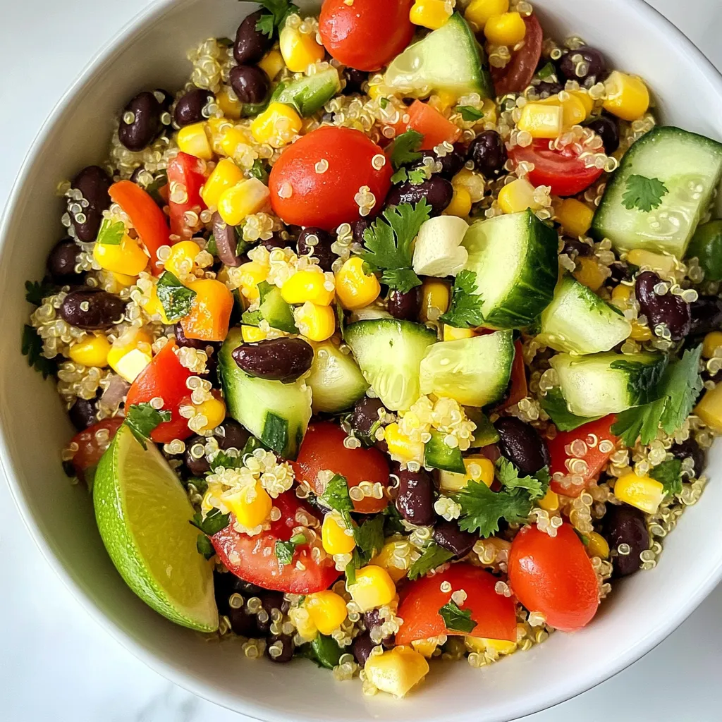 A refreshing salad featuring quinoa, vegetables, and a zesty lime dressing.