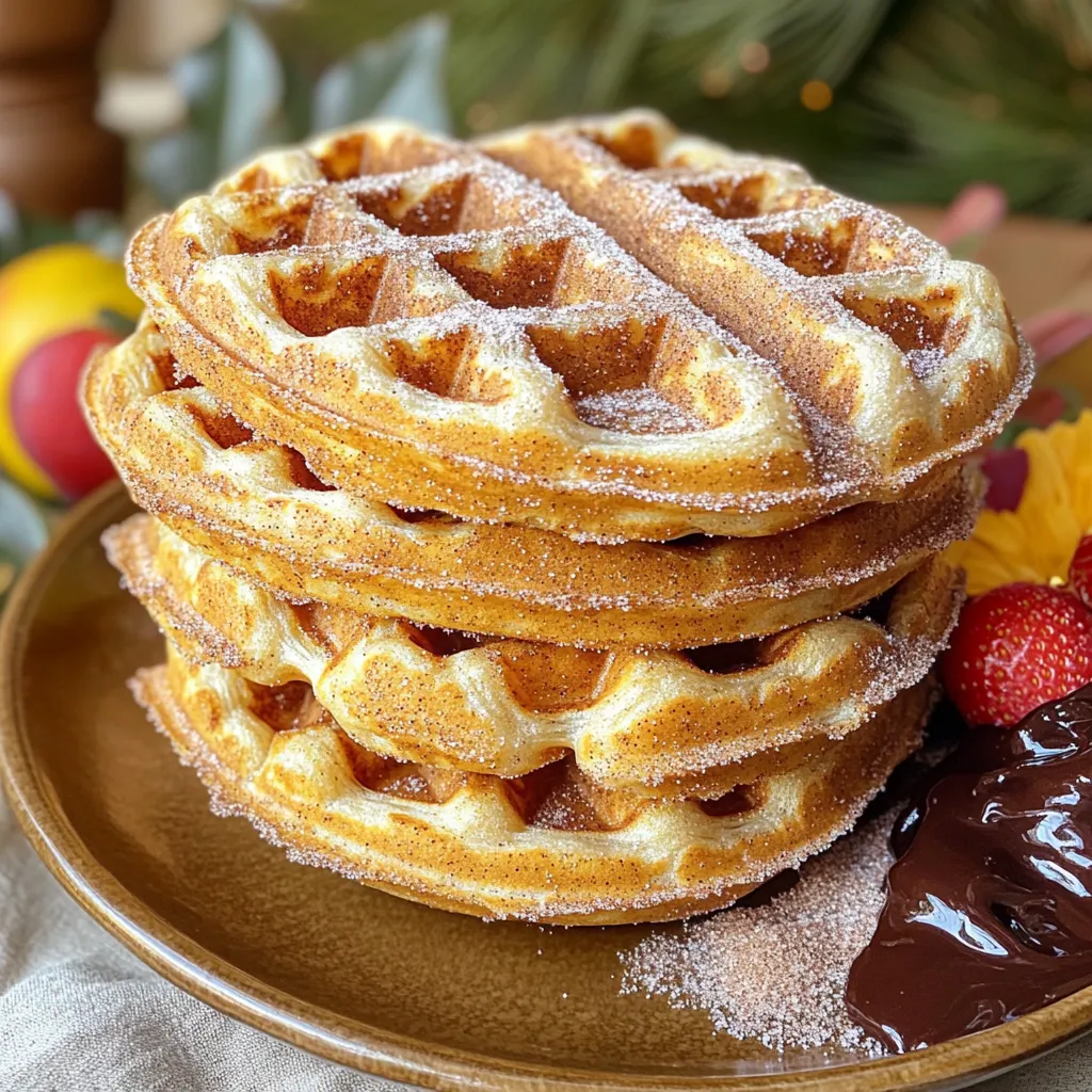 Stack two or three waffles for a fun look. Drizzle chocolate sauce on top. You can also sprinkle extra cinnamon sugar over them. For a pop of color, add fresh fruit on the side. This adds freshness and makes your plate more appealing.