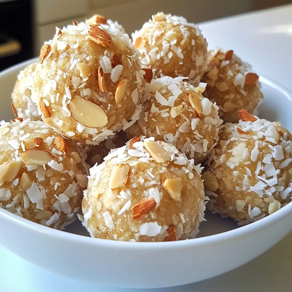 Delicious and nutritious energy balls made with almonds, coconut, and oats, perfect for a quick snack.