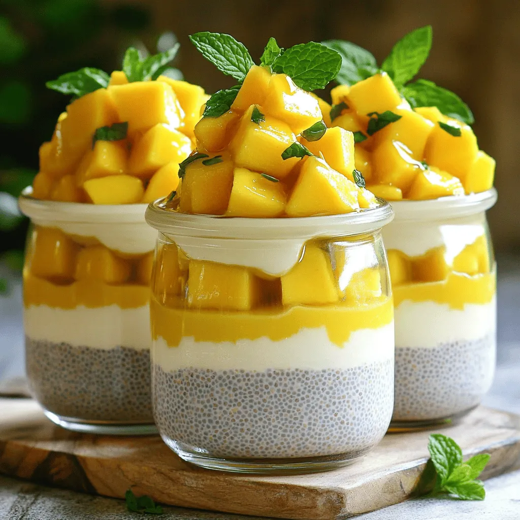 ![- Coconut milk - Almond milk - Chia seeds - Maple syrup or honey - Ripe mango - Vanilla extract - Pinch of salt - Fresh mint leaves (optional) Coconut mango chia pudding needs a few simple ingredients. First, you will need coconut milk, which gives a lovely creamy base. Almond milk adds a light touch, but you can use any plant-based milk you like. Chia seeds are key. They soak up the liquids and turn the mix into a pudding. For sweetness, use maple syrup or honey, depending on your taste. Next, you need a ripe mango. Make sure it’s sweet and juicy. It adds a fresh flavor and pretty color. Vanilla extract enhances the taste, while a pinch of salt balances the sweetness. If you want, add fresh mint leaves for garnish. They bring a nice pop of color and a hint of freshness. - Dairy-free options - Sweetness alternatives - Fruit variations You can make this pudding dairy-free by using only plant-based milks. Almond milk works well, but oat or soy milk are good too. If you want less sugar, use a low-calorie sweetener instead of maple syrup or honey. For fruit, think beyond mango. You can try berries, peaches, or even bananas. Each fruit will give a different taste. Get creative and mix your favorites! This pudding is all about your personal touch. 1. Mixing the base ingredients: Start by grabbing a medium bowl. Pour in 1 cup of coconut milk, 1/2 cup of almond milk, 2 tablespoons of maple syrup, 1 teaspoon of vanilla extract, and a pinch of salt. Stir well until everything blends smoothly. This mix creates a tasty base for your pudding. 2. Incorporating chia seeds: Next, slowly add 1/4 cup of chia seeds into the milk mixture. Whisk continuously as you add the seeds. This step helps to avoid any clumps. You want the chia seeds evenly mixed in. 3. Refrigeration duration: After mixing, cover the bowl with plastic wrap or a lid. Place it in the fridge for at least 4 hours, or overnight if you can wait. This time allows the chia seeds to absorb the liquid and thicken the pudding perfectly. 1. Layering in glasses: When you're ready to serve, give the pudding a good stir. Grab some clear glasses or bowls. Layer the chia pudding into each glass for a beautiful presentation. 2. Adding mango and garnish: Top each serving with diced mango. You can use 1 ripe mango, diced, for this. If you like, add fresh mint leaves on top for a pop of color and extra flavor. This will make your pudding look stunning and taste even better. 1. Adjusting thickness with almond milk: If you find the pudding too thick, don’t worry! You can add a little more almond milk. Stir it in until you reach your desired thickness. This adjustment keeps it creamy and smooth. 2. Ensuring even chia seed distribution: To avoid clumping, always whisk the chia seeds in slowly. This ensures they spread evenly throughout the pudding. It gives you that perfect texture in every bite! For the full step-by-step process, check out the Full Recipe. To keep your coconut mango chia pudding fresh, store it in an airtight container. This will help prevent any odors from the fridge. It’s best to eat it within three days. After that, the flavors may fade or the texture may change. You can make this pudding a day before serving it. This gives the chia seeds time to soak and thicken. Aim for at least four hours of chilling time. Overnight is even better for a rich, creamy pudding. Want to boost the taste? Try adding a splash of lemon or lime juice. You can also mix in spices like cinnamon or nutmeg for warmth. For texture, top your pudding with granola or nuts. This adds a nice crunch and makes each bite even more fun! {{image_2}} You can make this recipe even more fun! Try adding passion fruit or pineapple. Both fruits add a bright, tart flavor. They mix well with the sweet mango. You can also throw in some coconut flakes on top. This will give you a nice crunch and boost the coconut taste. Want to cut down on sugar? Use low-calorie sweeteners like stevia or monk fruit. These sweeteners keep your pudding tasty without the extra calories. You can also add nut butters for a protein boost. Almond or cashew butter works great and makes the pudding creamier. Get creative with seasonal fruits! In summer, use berries like strawberries or blueberries. In fall, swap in apples or pears. This keeps your pudding fresh and exciting. You can adapt the recipe to fit the seasons. Enjoy different flavors all year long! For the full recipe, check out [Full Recipe]. Store your coconut mango chia pudding in an airtight container. This keeps it fresh and tasty. Make sure to place it in the main compartment of your fridge. Avoid the door, as it can be too warm. If you notice any off smells or changes in color, it might be bad. Toss it out to be safe. You can freeze this pudding for later. To do this, pour it into a freezer-safe container. Leave some space at the top, as it will expand when frozen. Seal the container tightly. When you're ready to eat, move it to the fridge for a slow thaw. This can take several hours or overnight. You can also use the microwave to defrost it quickly. Just be sure to stir it well afterward. Coconut mango chia pudding lasts about 5 days in the fridge. For the best taste, eat it within this period. If you freeze it, it can last about 2 months. To keep it fresh, always check for signs of spoilage. If it looks or smells funny, don't eat it. For a fun twist, you can layer it with fresh fruits right before serving. This adds a burst of flavor and keeps it exciting. For the full recipe, check out the details above. Chia pudding needs time to thicken. It takes at least 4 hours to set. I recommend letting it chill overnight for the best texture. The longer it sits, the creamier it becomes. Yes, you can! Almond milk works well, but you can try oat milk or soy milk. Each milk adds its own flavor. Just remember to keep the ratio the same for best results. Absolutely! Chia pudding is perfect for meal prep. You can make a big batch in advance. Store it i
