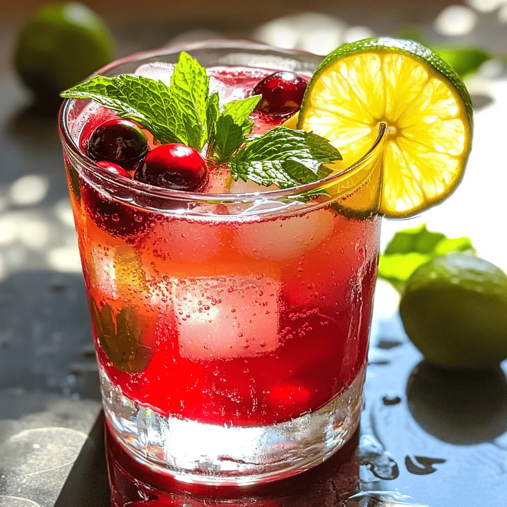 ![- 1 cup cranberry juice (no added sugar) - 1/2 cup sparkling water - 1/4 cup fresh lime juice (about 2 limes) - 2 tablespoons honey or agave syrup - Fresh mint leaves for garnish - Lime slices for garnish - Ice cubes To make a great cranberry lime spritzer, you need fresh ingredients. Start with cranberry juice that has no added sugar. This keeps your drink healthy and tasty. You will also need sparkling water, which adds a nice fizz. Fresh lime juice gives the drink a bright flavor. You can use about two limes for this. For sweetness, add honey or agave syrup. You can adjust this based on how sweet you like your drink. Fresh mint leaves and lime slices make great garnishes. They not only look good but also add a fresh aroma. Finally, don’t forget ice cubes to keep your spritzer cold and refreshing. If you don’t have cranberry juice, you can try pomegranate juice. This will change the flavor a bit but still taste great. For sweetness, if you prefer granulated sugar, feel free to use it instead of honey or agave. Just mix it well until it dissolves. You can also use bottled lime juice if fresh limes are not available. Just make sure to check the label for added sugars. The goal is to keep the drink as fresh and tasty as possible. To make the cranberry lime spritzer, start with the juices. In a large pitcher, mix 1 cup of cranberry juice with 1/4 cup of fresh lime juice. Use about 2 limes for this. Add 2 tablespoons of honey or agave syrup. Stir well until the sweetener dissolves. Next, it's time for the sparkling water. For this, you will add 1/2 cup of sparkling water. Gently stir the mixture to combine. Be careful not to stir too hard; we want to keep the fizz! For serving, grab some ice cubes. Fill each glass with ice, then pour the cranberry-lime mixture over the ice. Fill each glass about three-quarters full. To make the drinks look pretty, add garnishes. Use fresh mint leaves and a slice of lime on the rim of each glass. This adds a pop of color and makes your drink extra special! To keep your drink cold, use chilled ingredients. Store the juices in the fridge before mixing. You can also use ice cubes made from cranberry juice for an extra touch. Garnishes are key for a great presentation. They not only look nice but also add fresh flavor. Use bright mint leaves and colorful lime slices. These small details impress your guests and make the drink feel festive! You can find the Full Recipe [here]. To make your cranberry lime spritzer even better, you can add fruits or herbs. Fresh raspberries or strawberries can bring a sweet twist. You might also try adding sliced cucumbers for a refreshing touch. Fresh herbs like basil or rosemary can add depth. Balancing sweetness with tartness is key. If your drink is too sweet, add more lime juice. You can also use less honey or agave syrup. Adjust to your taste. Finding the right mix will make your spritzer shine. Selecting the right glassware can elevate your drink. Use tall glasses to show off the colors. A mason jar gives a fun, rustic look. For a fancy vibe, consider stemmed glasses. Garnishes can set the mood for your spritzer. Use lime slices on the rim for a pop of color. Fresh mint leaves not only look great but add aroma. For a festive touch, try adding edible flowers. Each occasion can have its own special flair with the right garnishes. For the full recipe, check the details above. Enjoy crafting your perfect cranberry lime spritzer! {{image_2}} You can change the flavor of your cranberry lime spritzer with other juices. Adding orange juice gives it a bright note. Pineapple juice adds a tropical twist. Mix and match to find your favorite blend. Herbs can also change the taste. Try adding fresh basil for a sweet touch. Rosemary adds an earthy flavor that surprises your palate. Just a few leaves can make a big difference. If you want to turn this drink into a cocktail, it's easy. Add your favorite spirit to the mix. Vodka pairs well because it has a clean taste. Gin can add herbal notes that complement the flavors. For a sweeter option, rum works nicely too. Just remember to adjust the sweetness if you add alcohol. Enjoy the spritzer as a fun drink for any party! You can find the full recipe to get started. To keep your cranberry lime spritzer fresh, store it in the refrigerator. Use a sealed pitcher or jar to avoid spills and preserve flavor. The spritzer stays good for up to three days. After that, it may lose some fizz and taste. You can make a batch of the spritzer ahead of time. Just remember, it tastes best fresh. To make it last longer, do not add sparkling water until you are ready to serve. You can freeze garnishes like mint and lime slices. Place them in a freezer bag and pull them out when you need them. This way, you have fun, fresh flavors ready to go. For the full recipe, check the earlier section. Can I use sugar instead of honey/agave? Yes, you can use sugar. Just dissolve it in the juices. Start with a small amount and taste. Adjust until it suits your needs. Sugar adds sweetness but may change the flavor a bit. Is cranberry-lime spritzer kid-friendly? Absolutely! This drink is perfect for kids. It has fun colors and tastes great. Just make sure to use juice with no added sugar. This keeps it healthier for little ones. How can I make this spritzer alcohol-free? The cranberry-lime spritzer is already alcohol-free! It’s a great choice for parties or family gatherings. You can also add fruit slices or herbs for extra flair. What to do if the drink is too sweet/tart? If it’s too sweet, add more lime juice to balance it. A splash of sparkling water helps, too. If it’s too tart, add a bit more honey or sugar. Taste as you go! Fixing fizzy drinks that went flat If your spritzer lost its fizz, try adding fresh sparkling water. Pour it gently to keep some bubbles. You can also serve it over ice right before serving. This helps keep it cool and fizzy! This blog post covered how to make a cranberry-lime spritzer. We ex