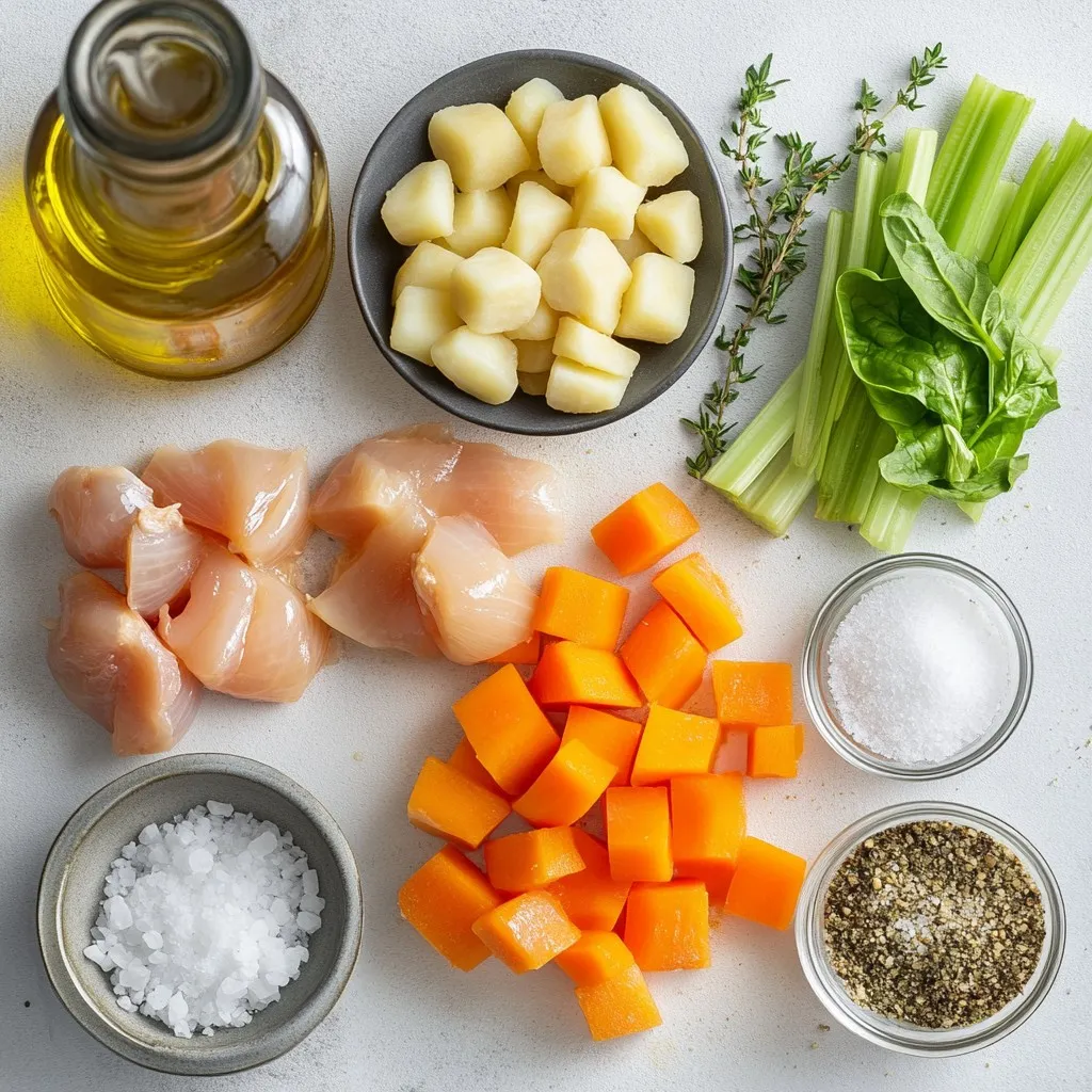 To make this creamy chicken gnocchi soup, gather these ingredients: