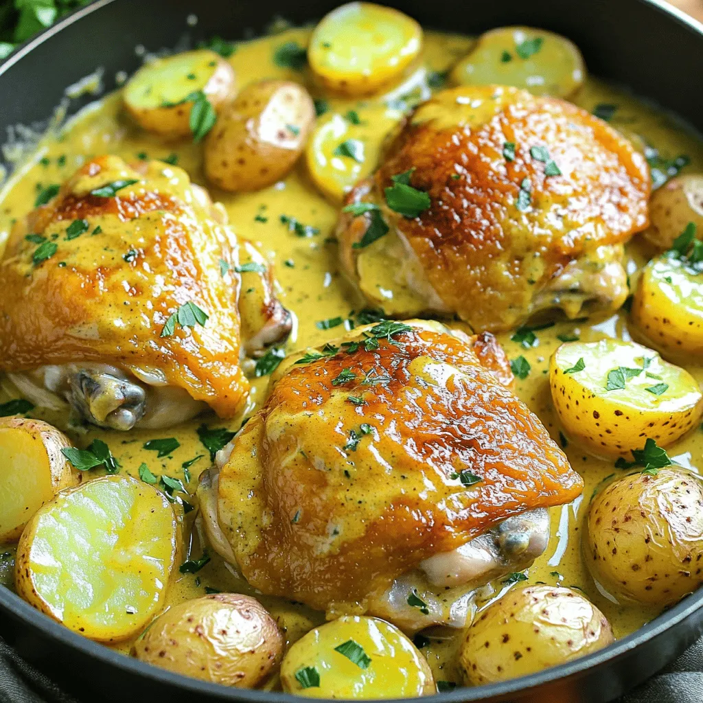 This dish combines chicken thighs, baby potatoes, and a creamy sauce for a delicious meal. We covered how to cook, season, and store the dish effectively. You can also explore variations to suit your taste or dietary needs. Embrace your cooking skills with this simple recipe. Enjoy the flavors and share it with others. Happy cooking!