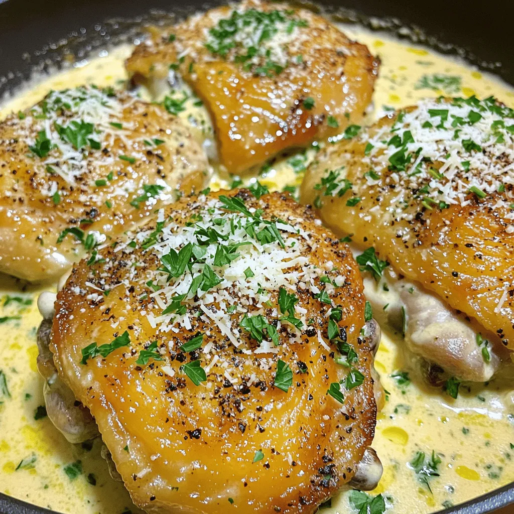 After that, mix in the grated Parmesan cheese. Stir until it melts and the sauce becomes creamy. Then, return the chicken thighs to the skillet. Coat them well with the creamy sauce. Let everything simmer together for another 2-3 minutes to heat through.