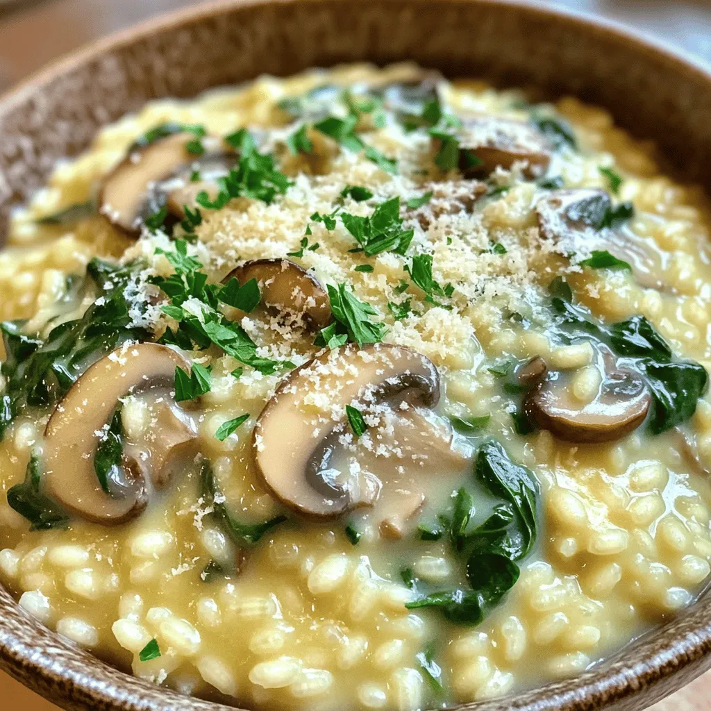 To make a delicious creamy mushroom spinach risotto, gather these key items: