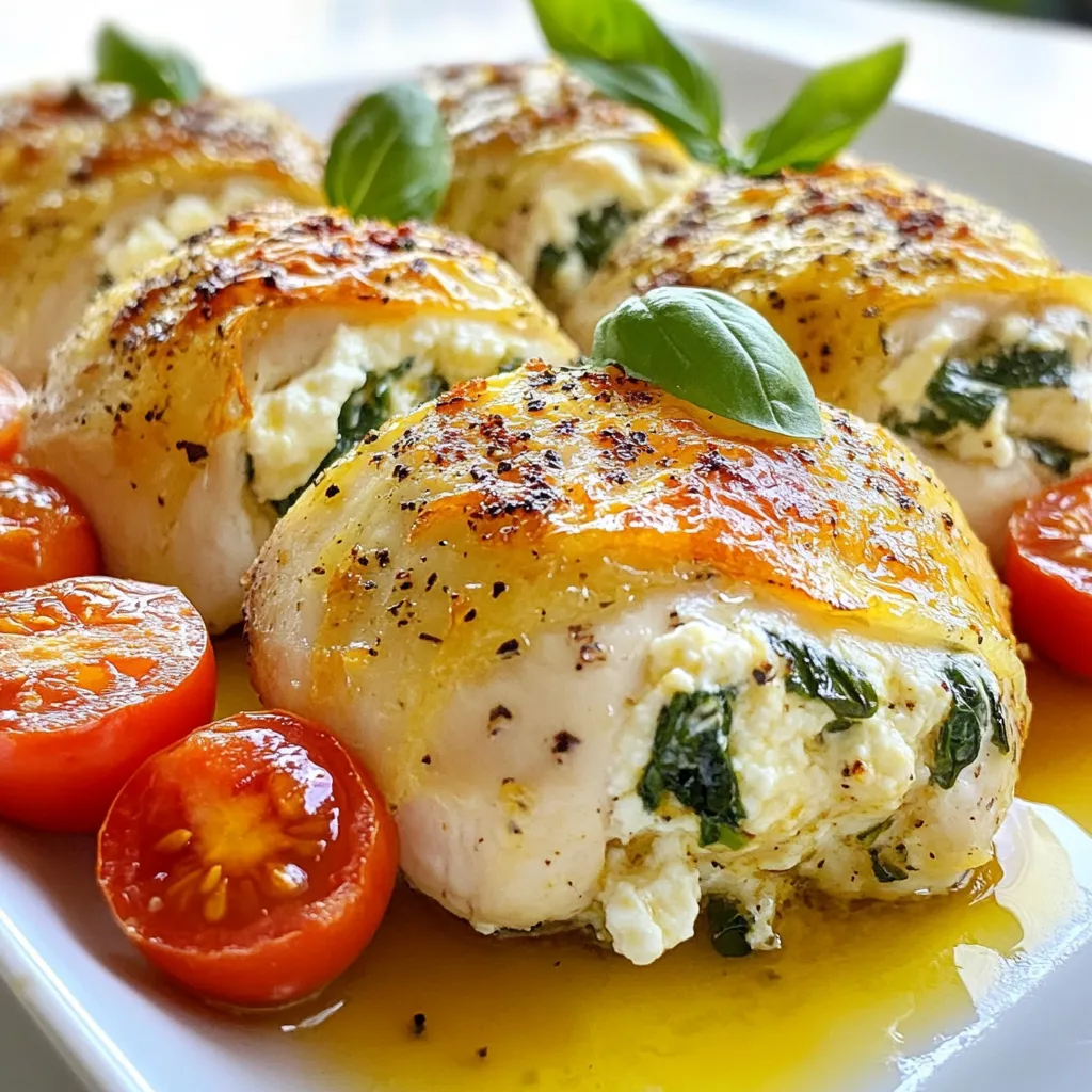 Delicious chicken breasts stuffed with a creamy spinach and cheese filling, baked to perfection.
