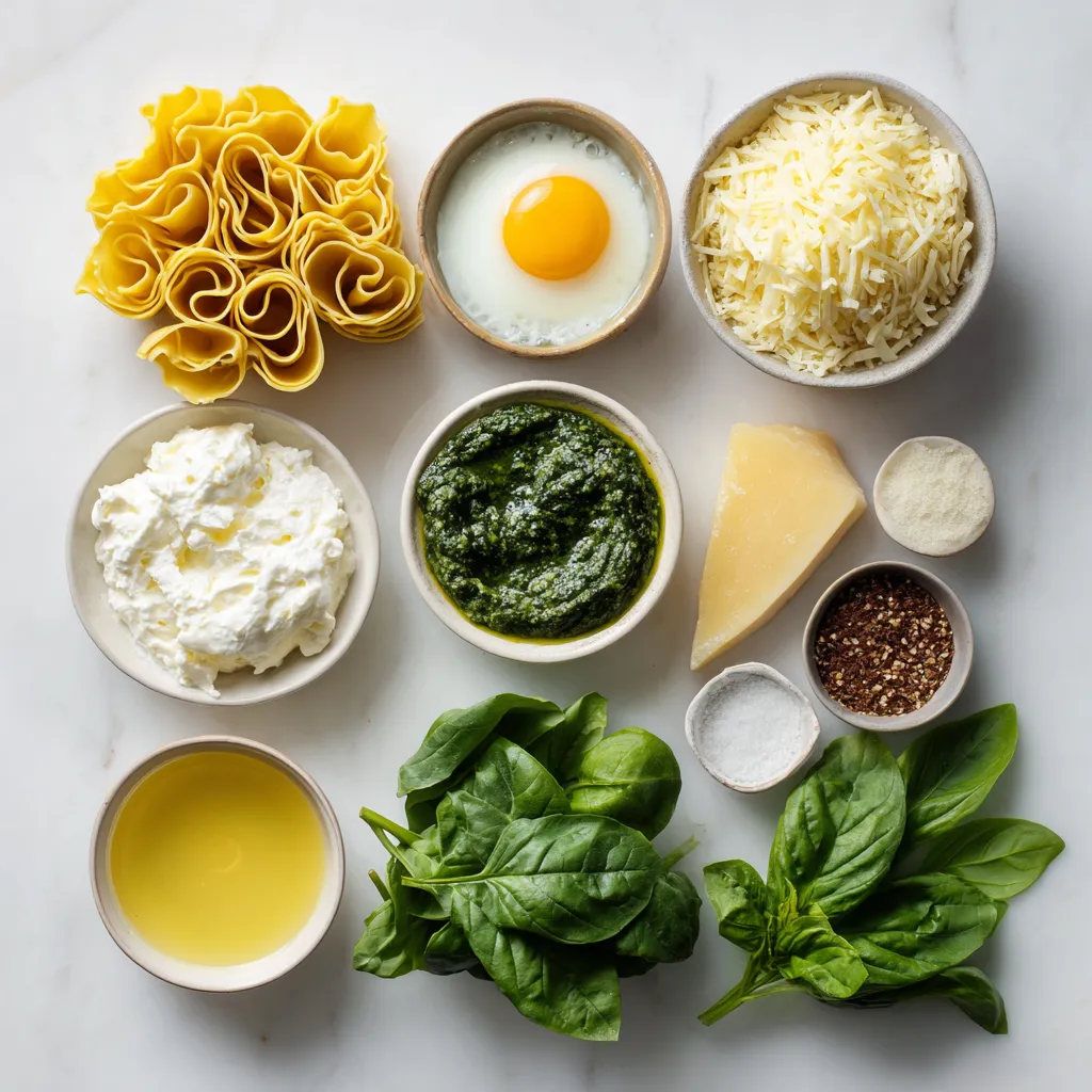 Gathering the right ingredients is key for this creamy pesto chicken lasagna. First, the lasagna noodles hold everything together. You can use any brand you like. Next, cooked chicken adds protein. I often use rotisserie chicken for ease. Ricotta cheese creates a creamy layer. Mozzarella cheese gives that gooey texture. Parmesan cheese adds a sharp flavor. Basil pesto provides a fresh and herby essence. Heavy cream adds richness, making the dish indulgent. An egg helps bind the ricotta. Fresh spinach is a nice touch, but it’s optional. Garlic powder enhances the flavor. Finally, salt and pepper balance everything. I like to garnish with fresh basil leaves for a pop of color.