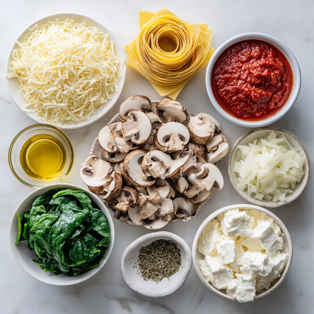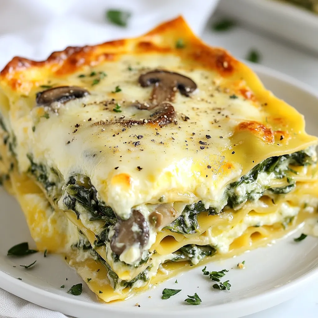 - 9 lasagna noodles: Choose standard or no-boil noodles for ease. - 2 cups fresh spinach, chopped: Fresh spinach adds a vibrant color and flavor. - 2 cups mushrooms, sliced: Use cremini or button mushrooms for a rich taste. - 1 onion, diced: Onion gives depth to the dish. - 3 cloves garlic, minced: Garlic adds a nice aroma and taste. - 2 cups ricotta cheese: This cheese gives a creamy texture and mild flavor. - 2 cups mozzarella cheese, shredded: Mozzarella melts well for a gooey top. - 1 cup grated Parmesan cheese: Parmesan adds a salty bite. - 2 tablespoons olive oil: Olive oil is great for sautéing and flavor. - 1 teaspoon dried oregano: This herb brings an earthy aroma. - Salt and pepper to taste: Essential for seasoning. - 2 cups marinara sauce: Marinara adds a tangy base layer. - 1 cup heavy cream: Cream makes the dish extra rich and smooth. - Zucchini or bell peppers: Add for more veggies and color. - Fresh herbs: Basil or parsley can enhance the taste. - Red pepper flakes: For a spicy kick, sprinkle some in. - Meat options: Ground beef or sausage can be added for a protein boost. These ingredients come together to create a lasagna that is rich, creamy, and full of flavor. Don’t hesitate to mix and match based on your taste and what you have on hand! {{ingredient_image_1}} 1. Cooking the lasagna noodles Start by boiling a big pot of water. Add a pinch of salt for flavor. Cook the lasagna noodles as the package says. Aim for al dente, which means firm but not hard. Once done, drain them and set them aside. You want them ready for the layers. 2. Sautéing vegetables and seasoning Grab a large skillet and heat olive oil over medium heat. Toss in the diced onion and let it cook until soft. This takes about five minutes. Next, add minced garlic and sliced mushrooms. Cook until the mushrooms are soft, taking around four to five minutes. Stir in the chopped spinach. Cook it just until it wilts. Sprinkle in oregano, salt, and pepper to taste. This mixture will add rich flavor to your lasagna. 1. Layering strategies for best results Start with a thin layer of marinara sauce in your baking dish. This helps prevent sticking. Place three lasagna noodles over this sauce. Next, spread half of the ricotta mixture on top of the noodles. 2. Recommended order of ingredients After the ricotta, add half of the sautéed mushroom and spinach mix. Drizzle one-third of the heavy cream mixture over this. Add three more noodles and repeat the layers. Use the remaining ricotta mixture and the rest of the mushroom and spinach. Drizzle another third of the cream. Finally, place the last three noodles on top. Spread the rest of the marinara sauce and pour the remaining cream mixture over it. Top with the rest of the mozzarella and Parmesan cheese. 1. Covering and baking the lasagna Cover your baking dish with aluminum foil to keep the moisture in. Preheat your oven to 375°F (190°C). Bake the covered lasagna for 25 minutes. This helps it cook evenly. 2. Best practices for achieving golden topping After 25 minutes, remove the foil. Bake for another 15 to 20 minutes. You want the top to be golden and bubbly. This gives the dish a beautiful look and a crisp texture. Let it rest for 10 minutes before slicing. Enjoy each bite! You can change some ingredients if you have dietary needs. Here are some ideas: - Cheese Swap: Use cottage cheese instead of ricotta for a lighter dish. - Dairy-Free: Try almond or soy yogurt as a ricotta substitute. - Vegetarian Option: Use a mix of other veggies like zucchini or bell peppers. - Frozen Ingredients: If you have frozen spinach or mushrooms, they work well. Just thaw and drain excess water to avoid sogginess. Preventing soggy lasagna is key for a great dish. Here’s how: - Noodle Prep: Cook the noodles until al dente. They will absorb some moisture while baking. - Layering: Spread a thin layer of sauce on the bottom. This helps the noodles cook evenly and keeps them from getting too wet. - Resting Time: Let the lasagna sit for ten minutes after baking. This helps it set and makes slicing easier. For even cooking, follow these steps: - Even Layering: Distribute ingredients evenly. This ensures every slice has the same flavors. - Covering: Use foil during the first part of baking. This keeps moisture in and helps everything cook through. Pair your lasagna with simple sides for a complete meal: - Salads: A fresh green salad with lemon vinaigrette adds brightness. - Garlic Bread: Serve with warm garlic bread for extra flavor. - Wine Pairing: A light white wine complements the creamy flavors well. For presentation, consider these tips: - Slice Neatly: Cut the lasagna into squares for easy serving. - Warm Plates: Serve on warmed plates to keep the dish hot. - Garnish: Add fresh basil or parsley on top for color and freshness. Pro Tips Use Fresh Ingredients: Fresh spinach and mushrooms enhance the flavor and texture of your lasagna, making it more vibrant and delicious. Let it Rest: Allow the lasagna to rest for about 10 minutes before slicing. This helps the layers set, making it easier to serve and enjoy. Experiment with Cheeses: Feel free to mix different types of cheeses, such as goat cheese or fontina, for a unique flavor profile. Layer Wisely: Ensure even distribution of ingredients across layers to maintain consistency in flavor and texture throughout the lasagna. {{image_2}} You can make this dish even more colorful and fun by adding other veggies. Consider using zucchini or bell peppers. Both add great taste and texture. You can also add artichoke hearts or roasted eggplant. For a creamy sauce twist, try using a blend of ricotta cheese with cream cheese. This gives a richer texture. You might also add a bit of pesto for a fresh, herby flavor. If you need gluten-free noodles, look for brands made from rice or corn. These noodles work well and cook nicely. They can give the same great taste without gluten. To adapt the recipe, ensure your marinara sauce is gluten-free too.