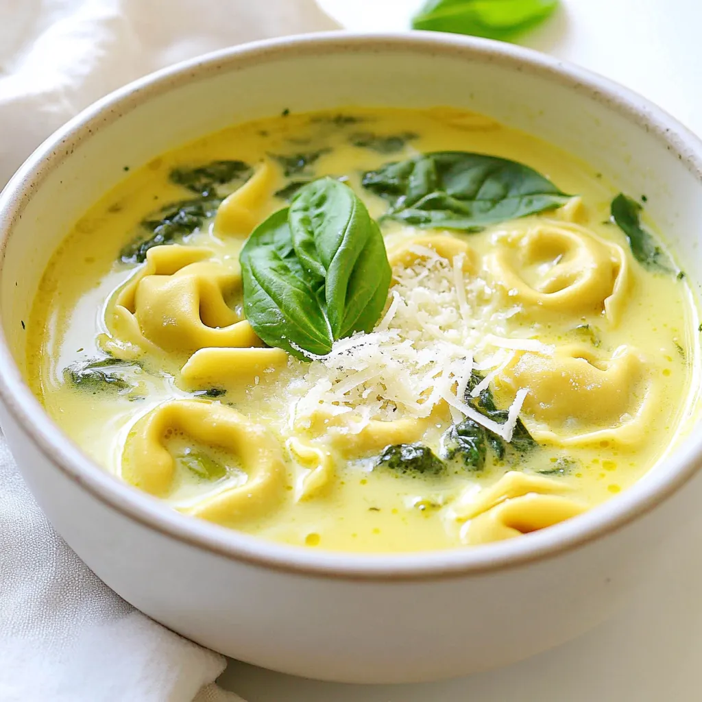 A delicious and comforting soup featuring cheese tortellini, fresh spinach, and a creamy broth.