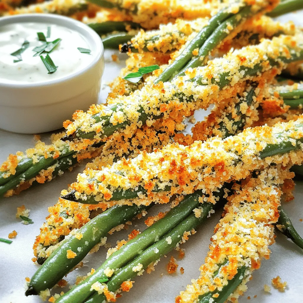 For this recipe, you need 1 pound of fresh green beans. Trim the ends so they are ready for frying. Fresh beans give the best crunch and flavor. Look for bright green beans without blemishes. They should feel firm and crisp when you pick them up. You will need 1 cup of breadcrumbs for coating. I recommend using panko breadcrumbs for extra crunch. They create a light and crispy texture. Mix in 1/2 cup of grated Parmesan cheese to add a savory kick. This makes the fries taste richer and more delicious. The flavor comes from the seasonings. Use 1 teaspoon of garlic powder and 1 teaspoon of onion powder. These add great depth to your fries. Also, add 1/2 teaspoon of smoked paprika for a subtle smokiness. Don’t forget the salt and pepper to taste. This mix of ingredients creates tasty, crispy air fryer green bean fries. For the full details on how to prepare them, check out the Full Recipe. Start by preheating your air fryer to 400°F (200°C). Preheating helps cook the fries evenly. It only takes a few minutes, so be patient. In a medium bowl, mix these ingredients together: - 1 cup breadcrumbs (use panko for more crunch) - 1/2 cup grated Parmesan cheese - 1 teaspoon garlic powder - 1 teaspoon onion powder - 1/2 teaspoon smoked paprika - Salt and pepper to taste Stir until the mix is well blended. This coating gives the fries flavor and crunch. In another bowl, beat two large eggs. Dip each green bean into the eggs. Let any extra egg drip off. Then roll it in the breadcrumb mix. Press gently to coat well. It should stick nicely. Place the coated green beans in a single layer in the air fryer basket. Do not overcrowd them. You may need to cook in batches. Lightly spray the beans with olive oil spray. This adds extra crispiness. Cook for 8-10 minutes. Shake the basket halfway through for even cooking. Once they are golden brown and crispy, remove the fries. Let them cool for a minute. Serve them hot. You can sprinkle more Parmesan on top. Pair them with a tasty dip like ranch or sriracha mayo. This adds a fun flavor twist. For the full recipe, check the section above. To get the best crunch from your green bean fries, follow a few smart tips. First, always preheat your air fryer. A hot air fryer cooks evenly and helps create that nice crisp. Next, avoid overcrowding the basket. If the beans are too close, they won’t fry well. Work in batches if needed. Finally, spray the coated beans lightly with olive oil before frying. This helps them brown beautifully. When choosing green beans, fresh is best. Look for bright green beans with a firm snap. You can use standard green beans or French haricots verts. Both work well, but haricots verts tend to be thinner and cook faster. Whichever you choose, make sure to trim the ends. This keeps the fries neat and tidy. Olive oil is key for flavor and crispiness. Use a spray bottle to coat the beans lightly. This way, you use less oil while still getting that golden finish. It’s also smart to choose extra virgin olive oil for its taste. The oil not only helps with browning but also adds a nice richness to each bite. Remember, too much oil can lead to sogginess, so less is more! For the full recipe on how to make these tasty green bean fries, check out the [Full Recipe]. {{image_2}} You can change the type of breadcrumbs for your green bean fries. Panko gives a light crunch. Regular breadcrumbs work too, but they may be less crisp. You can also try crushed cornflakes for a unique texture. Gluten-free breadcrumbs are great for those with dietary needs. Experiment and find your favorite! Adding different spices can change the taste of your fries. Try cayenne pepper for heat. Italian seasoning adds a nice herb flavor. For a smoky taste, add more smoked paprika. You can also toss in some Parmesan cheese into the breadcrumb mix for extra flavor. Be creative with your choices! Dipping sauces can make your green bean fries even better. Classic ranch dressing pairs well. Sriracha mayo gives a spicy kick. You can also use a simple garlic aioli for a creamy touch. If you want something sweet, try honey mustard. The right dip can enhance your snack time! For the full recipe, check out the Crispy Air Fryer Green Bean Fries section. After you finish your crispy air fryer green bean fries, make sure to cool them. Place the leftover fries in an airtight container. They stay fresh in the fridge for up to three days. If you want them to last longer, you can freeze them. To bring back the crispiness, heat your fries in the air fryer. Set it to 350°F (175°C) and cook for about 3-5 minutes. This method helps restore their crunch. You can also use an oven, but the air fryer works best! If you want to freeze your green bean fries, place them in a single layer on a baking sheet. Freeze until firm, then transfer them to a freezer bag. They can stay in the freezer for up to three months. When you’re ready to eat, air fry them straight from the freezer at 400°F (200°C) for about 10-12 minutes. Enjoy your tasty treat! For the complete recipe, check out the full recipe above. You can serve crispy air fryer green bean fries with many tasty dips. Ranch dressing is a favorite. You can also try sriracha mayo for a spicy kick. These fries pair well with burgers, sandwiches, or salads too. They add a nice crunch to any meal. You can even enjoy them as a snack on their own! Yes, you can use frozen green beans. However, fresh green beans give the best results. If you use frozen ones, make sure to thaw and dry them first. This helps them get crispy in the air fryer. You may need to increase the cooking time by a few minutes. Just keep an eye on them to avoid burning. To make crispy air fryer green bean fries gluten-free, use gluten-free breadcrumbs. You can find these in many stores. Make sure to check the label to ensure they are truly gluten-free. You can also use crushed gluten-free crackers as a substitute. This keeps the crunch while making the recipe safe for those with gluten al