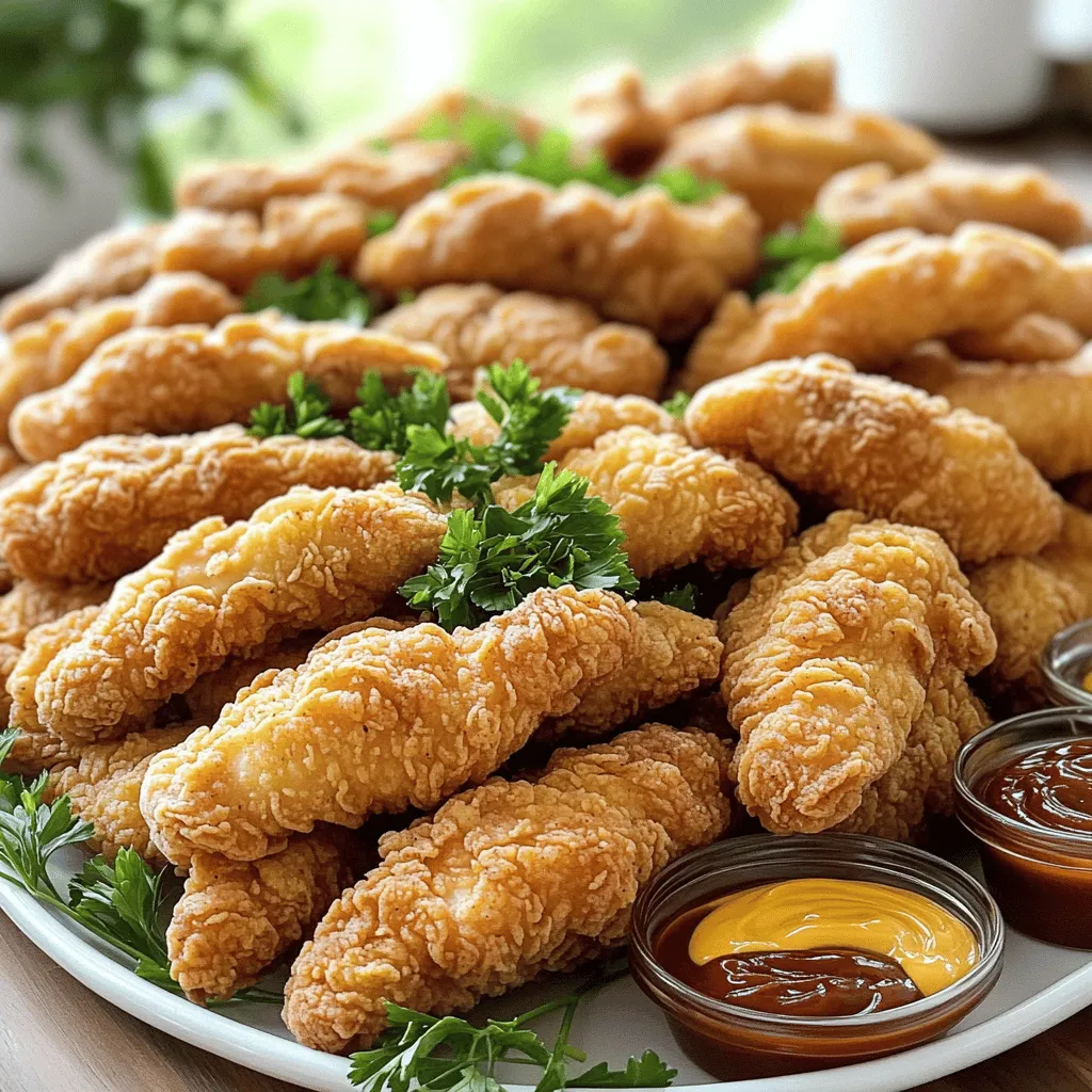 For plating, use a large platter. Arrange the crispy chicken tenders neatly. Add a sprinkle of parsley for color.