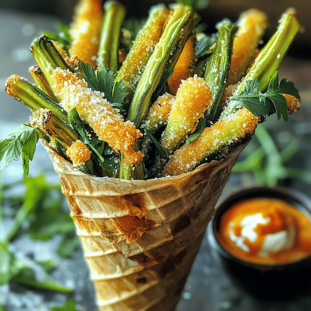 ![To make Crispy Parmesan Okra Fries, gather these simple ingredients: - 1 lb fresh okra, trimmed and cut into 1/2-inch slices - 1 cup buttermilk (or plant-based milk for dairy-free) - 1 cup cornmeal - 1/2 cup grated Parmesan cheese - 1 teaspoon garlic powder - 1 teaspoon onion powder - 1 teaspoon smoked paprika - 1/2 teaspoon cayenne pepper (adjust for spice preference) - Salt and pepper to taste - Cooking spray or oil for frying If you need to swap some ingredients, here are a few options: - Instead of buttermilk, use plain yogurt or a dairy-free alternative like almond milk. - You can replace Parmesan cheese with nutritional yeast for a vegan twist. - If you don’t have cornmeal, use breadcrumbs or crushed crackers for coating. - For a milder flavor, skip the cayenne pepper or use less. These okra fries are a tasty treat that packs flavor and some nutrition. Here’s a quick look: - Serving Size: 1/4 of the recipe - Calories: About 220 - Protein: 6g - Carbohydrates: 30g - Fat: 10g - Fiber: 4g This snack gives you a great way to enjoy okra while keeping it healthy. For the full recipe, check the cooking instructions. To start, gather your ingredients. You will need fresh okra, buttermilk, cornmeal, Parmesan cheese, and spices. Next, preheat your oven to 425°F (220°C). This step is key for crispiness. Line a baking sheet with parchment paper. This makes cleanup easy. Now, slice the okra into half-inch pieces. Place these slices in a bowl and soak them in buttermilk for at least 30 minutes. Soaking helps the coating stick better. While the okra soaks, mix the cornmeal, Parmesan cheese, garlic powder, onion powder, smoked paprika, cayenne pepper, salt, and pepper in a shallow dish. This will be your coating. After soaking, take the okra out of the buttermilk. Let the excess drip off. Then, dip each piece into the cornmeal mixture. Press lightly to ensure the coating sticks. Place the coated okra on the prepared baking sheet. Once all the okra is coated, lightly spray with cooking spray or drizzle a bit of oil on top. This will help them brown nicely. Now, bake the okra in your preheated oven for 20 to 25 minutes. Flip them halfway through for even cooking. You'll know they are ready when they are golden brown and crispy. Carefully remove them from the oven and let them cool slightly. For the best coating, ensure your okra is well-soaked in buttermilk. This step is crucial for crunch. Use fresh cornmeal for the best texture. Press the cornmeal coating onto the okra firmly. This helps it stick during baking. If you want extra flavor, add more spices to the cornmeal mix. You can also try different cheese for a unique taste. I recommend serving these fries with a spicy dipping sauce, like sriracha mayo. For even more fun, sprinkle extra Parmesan on top before serving. For the full recipe, check out the complete guide. Enjoy making these crispy Parmesan okra fries! To keep your okra fries crispy, follow a few key steps. First, soak the sliced okra in buttermilk. This helps the coating stick better. Second, use cornmeal for the coating. It gives a nice crunch that you will love. Lastly, don’t overcrowd the baking sheet. Give each piece space to cook evenly and stay crisp. Avoid these common mistakes for the best results. Don’t skip soaking the okra in buttermilk. It can lead to a less crispy texture. Also, be careful with the amount of oil. Too much can make the fries soggy. Lastly, make sure to flip the okra halfway through baking. This ensures all sides get that golden brown finish. You can enhance the flavor of your okra fries in fun ways. Try adding more spices to the coating. For a kick, add extra cayenne or some chili powder. You can also mix in fresh herbs like parsley or thyme. Finally, consider dipping sauces. A spicy sriracha mayo or a tangy ranch pairs well with the fries. For the full recipe, check out the complete guide. {{image_2}} You can take these okra fries up a notch. Add more heat for a spicy kick. Mix in extra cayenne pepper for bold flavor. You might also try adding chili powder or crushed red pepper flakes. This will make your fries fiery and fun. Adjust the spice to match your taste. Enjoy the thrill of spice with every bite! If you want a dairy-free option, it’s simple! Swap the buttermilk for plant-based milk. Almond or soy milk works great. For the Parmesan, try using a dairy-free cheese. Nutritional yeast is another tasty choice. It adds a cheesy flavor without dairy. You won’t miss the milk in this recipe! Get creative with your coatings. Instead of cornmeal, you can use panko breadcrumbs. They give a nice crunch. You could also try ground oats for a different texture. If you want more flavor, add herbs like Italian seasoning or thyme to your coating mix. Each variation offers a unique twist on the classic okra fries. For the full recipe, refer to the earlier section. After you enjoy your crispy Parmesan okra fries, store leftovers in an airtight container. Make sure they are cool before sealing. This helps keep them fresh. You can keep them in the fridge for up to three days. If you want to enjoy them later, freezing is a good option too. To reheat the okra fries, use the oven for the best results. Preheat your oven to 375°F (190°C). Spread the fries on a baking sheet. Bake for about 10-15 minutes, or until they get crispy again. If you are in a hurry, you can use the microwave, but they won't be as crispy. If you want to freeze the okra fries, do so before cooking them. After coating the okra, place them in a single layer on a baking sheet. Freeze for about an hour until they are solid. Then, transfer them to a freezer bag or container. They can stay in the freezer for up to three months. When you’re ready to cook, bake from frozen for about 25-30 minutes at 425°F (220°C). Enjoy your crispy snack anytime! For the full recipe, visit [Full Recipe]. The best way to prepare okra is by cutting it into slices. This helps it cook evenly. Soaking the slic