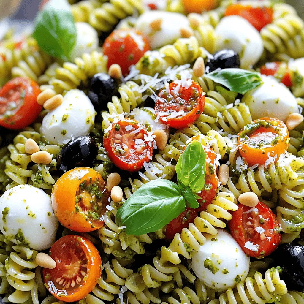 For a gluten-free option, try brown rice pasta or chickpea pasta. Both work well in salads. If you need dairy-free options, use vegan cheese instead of mozzarella. For the pesto, look for dairy-free versions or make your own with nuts and olive oil.
