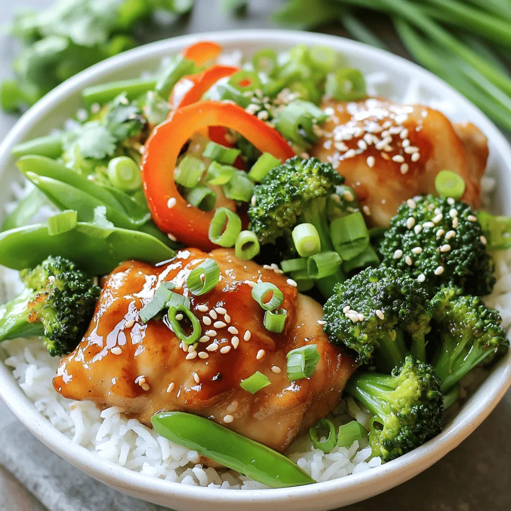 To make these tasty bowls, you'll need a few key items: - 1 lb boneless, skinless chicken thighs, cut into bite-sized pieces - 1 cup teriyaki sauce (store-bought or homemade) - 2 tablespoons sesame oil - 2 cups cooked white rice or brown rice - 1 cup broccoli florets - 1 cup snap peas - 1 red bell pepper, sliced - 2 green onions, sliced (for garnish) - Sesame seeds (for garnish) These ingredients come together to create a meal that is bold in flavor and easy to prepare. You can easily change the recipe to match your tastes or what's in your kitchen. Here are some ideas: - Carrots, julienned - Bell peppers in different colors - Baby corn or water chestnuts - Edamame for extra protein - Cashews or peanuts for crunch Feel free to mix and match these options. You’ll find a version you love! This dish is not only delicious but also packed with nutrients. Here’s a quick breakdown per serving: - Calories: Approximately 450 - Protein: 28 grams - Carbohydrates: 55 grams - Fat: 15 grams - Fiber: 5 grams This meal offers a good balance of protein and carbs, making it a great choice for lunch or dinner. For the full recipe, check out the section above! Start by cutting the chicken thighs into bite-sized pieces. This helps the chicken cook faster and soak up the flavor. In a bowl, add the chicken pieces and half of the teriyaki sauce. Mix them well so every piece gets coated. Let this sit for at least 15 minutes. If you have more time, marinate for up to 2 hours in the fridge. This step makes your chicken tasty and juicy. Heat sesame oil in a large skillet or wok over medium-high heat. When the oil is hot, add the marinated chicken. Make sure to discard any leftover marinade. Cook the chicken for about 5 to 7 minutes. Stir occasionally to help it cook evenly. You want the chicken to be browned and no longer pink inside. This step is key for a safe and delicious meal. Once your chicken is cooked, it's time to add the veggies. Toss in the broccoli, snap peas, and sliced red bell pepper. Stir-fry the mix for 3 to 5 minutes. You want the vegetables to be tender but still crunchy. This keeps them bright and fresh. After mixing, pour the rest of the teriyaki sauce over everything. Stir well to coat all the ingredients. Heat for one more minute to blend those flavors. Now, you’re ready to assemble your Easy Teriyaki Chicken Bowls! Check out the Full Recipe for complete details. To get the best flavor in your teriyaki chicken bowls, start with good marinating. Use half of the teriyaki sauce to marinate the chicken. Let it soak for at least 15 minutes. For a deeper taste, marinate for up to 2 hours in the fridge. This extra time allows the flavors to blend well. Also, think about using homemade teriyaki sauce. You can mix soy sauce, brown sugar, garlic, and ginger for a fresh taste. Cooking the chicken right is key to a great dish. Use medium-high heat in your skillet or wok. This helps the chicken brown nicely. Make sure to discard any excess marinade before cooking. This prevents excess liquid from steaming the chicken. Stir occasionally while cooking to ensure even browning. The chicken should take about 5-7 minutes to cook through. When done, it should no longer be pink in the center. Avoid common mistakes to make your bowls shine. Don’t skip the marinating step; it adds great flavor. Overcrowding the pan can also lead to uneven cooking. If you add too many ingredients at once, the chicken may steam instead of sear. Lastly, be careful not to overcook the veggies. They should be tender-crisp for the best texture. Keeping these tips in mind will help you create delicious teriyaki chicken bowls every time. For the complete cooking process, check out the Full Recipe. {{image_2}} You can swap the chicken for other proteins. Try beef, shrimp, or tofu. Each option brings unique flavors and textures. For beef, use thin slices of flank steak. Cook it quickly for a tender bite. If you choose shrimp, make sure they are fresh or thawed. Cook them until they turn pink. Tofu is great for a vegetarian twist. Press and cube it before cooking to get rid of excess moisture. Going meatless is easy with this dish. Use firm tofu or tempeh as your protein. Both absorb the teriyaki sauce well. You can also add more veggies to make it hearty. Vegetables like mushrooms, carrots, and zucchini work great. For a vegan version, ensure your teriyaki sauce is free from honey. Many brands offer vegan-friendly options. You can boost flavor with simple additions. Try fresh ginger or garlic for a spicy kick. A dash of red pepper flakes adds heat. You can also mix in sesame seeds during cooking for a nutty taste. For a tangy twist, drizzle some rice vinegar or lime juice before serving. Adding pineapple chunks can give a sweet and tropical flair. These small changes can make your teriyaki bowls exciting every time. For further details on making these variations, check the Full Recipe. To store leftovers, let the teriyaki chicken cool completely. Place it in an airtight container. You can keep it in the fridge for up to three days. Make sure to separate the rice from the chicken and veggies for better freshness. If you want to freeze the chicken bowls, use freezer-safe bags or containers. Make sure to label them with the date. You can freeze the bowls for up to three months. To avoid freezer burn, squeeze out as much air as possible before sealing. When reheating, the microwave works well. Heat the chicken and veggies for two minutes, stirring halfway. If you prefer, you can reheat on the stove. Just add a splash of water to keep it moist. Cook until heated through, about 5-7 minutes. Enjoy your Easy Teriyaki Chicken Bowls just as tasty as when you first made them! For the full recipe, check the earlier sections. You can serve many sides with Easy Teriyaki Chicken Bowls. Rice is a great base. I prefer white or brown rice for a hearty feel. You can also add a crisp salad. A simple cucumber salad works well. For extra color, try pickle