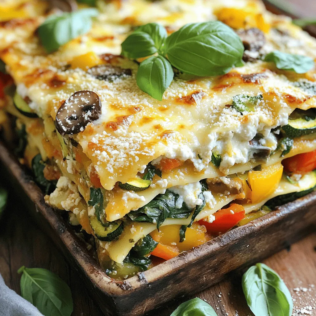 For this delightful dish, you'll need the following: - 9 lasagna noodles - 2 cups ricotta cheese - 2 cups shredded mozzarella cheese - 1 cup grated Parmesan cheese - 2 cups spinach, fresh or frozen (thawed and drained) - 1 medium zucchini, thinly sliced - 1 medium bell pepper (red or yellow), diced - 1 cup mushrooms, sliced - 2 cups marinara sauce - 2 cloves garlic, minced - 1 tablespoon olive oil - 1 teaspoon dried oregano - 1 teaspoon dried basil - Salt and pepper to taste - Fresh basil for garnish (optional) Each ingredient plays an important role in the flavor and texture of the lasagna: - Lasagna noodles: These serve as the base and structure. - Ricotta cheese: This adds creaminess and richness to the layers. - Mozzarella cheese: It melts beautifully and gives a gooey texture. - Parmesan cheese: This brings a sharp flavor and a nice golden crust. - Spinach: This adds color and nutrients, making the dish healthier. - Zucchini and bell pepper: These veggies add crunch and sweetness. - Mushrooms: They provide an earthy flavor and umami. - Marinara sauce: This binds everything together and adds moisture. - Garlic: This boosts flavor with its strong aroma. - Olive oil: It helps to sauté vegetables and adds healthy fats. - Dried herbs: Oregano and basil enhance the overall taste. - Salt and pepper: These season the dish, bringing out all the flavors. You can easily customize this lasagna to fit your needs: - Noodles: Use gluten-free lasagna noodles for a gluten-free option. - Cheese: Try vegan cheese for a dairy-free version. - Vegetables: Substitute with any of your favorite veggies, like eggplant or broccoli. - Marinara sauce: Swap it with pesto for a different flavor profile. - Herbs: Fresh herbs can replace dried ones for a brighter taste. This Easy Veggie Lasagna recipe is simple to make and full of flavor. You can find the full recipe [here]. First, boil water in a large pot. Add salt to the water. Cook the lasagna noodles as per the package guide. You want them to be al dente. This means they should still have a slight bite. Once cooked, drain the noodles and rinse them with cold water. This stops the cooking process and keeps them from sticking. In a big skillet, pour in some olive oil and heat it over medium heat. Add minced garlic, diced bell pepper, and sliced mushrooms. Cook these for about five minutes. Stir until they soften. Next, toss in the spinach and zucchini. Cook for three to four more minutes. Season this mix with oregano, basil, salt, and pepper. Once done, remove it from heat and let it cool a bit. Grab a large mixing bowl. Combine ricotta cheese, half of the mozzarella, and half of the Parmesan. Mix well until smooth. Next, grease a 9x13 inch baking dish lightly with olive oil. Start with a thin layer of marinara sauce at the bottom. Place three lasagna noodles over this sauce. Spread half of your ricotta mix on the noodles. Then add half of the sautéed veggies and a layer of marinara sauce. Repeat this process: three noodles, the rest of the ricotta, remaining veggies, and more sauce. Finally, top with the last three noodles and cover them with the remaining marinara sauce. Sprinkle the rest of the mozzarella and Parmesan on top. Cover your dish with aluminum foil. Bake it in a preheated oven at 375°F (190°C) for 25 minutes. After that, remove the foil. Bake for another 15 minutes. You want the cheese to be golden and bubbly. Once baked, let the lasagna sit for about ten minutes before slicing. This makes serving easier. Enjoy your delicious veggie lasagna! You can find the Full Recipe above for more details. To get the best texture in your lasagna, cook your noodles just right. They should be al dente, which means they are firm to the bite. This helps them hold up when layered. If you overcook them, they can turn mushy. Also, let your vegetable mixture cool before adding it to the layers. This keeps the cheese creamy and prevents the noodles from getting soggy. One common mistake is not seasoning your veggies. A pinch of salt and pepper brings out their flavors. Another mistake is skipping the resting time after baking. Letting the lasagna sit for about 10 minutes helps it set. If you slice it too soon, it may fall apart. Lastly, make sure to cover your lasagna while it bakes. This helps the cheese melt evenly and keeps it moist. You can easily make this lasagna ahead of time. Prepare it, but don’t bake it right away. Cover it tightly with plastic wrap and foil. It can stay in the fridge for 1-2 days or in the freezer for up to 3 months. When you’re ready to bake, let it thaw overnight in the fridge. Then, bake it as directed in the Full Recipe. This way, you’ll have a delicious meal ready to go! {{image_2}} You can mix up your easy veggie lasagna by adding other veggies. Think about using veggies like carrots, eggplant, or broccoli. Each of these brings a new flavor and texture. For a crunch, try adding some bell peppers or even corn. You can also use seasonal vegetables for a fresh twist. If you want a vegan or dairy-free option, simply swap out the cheeses. Use cashew cheese or store-bought vegan cheese instead. You can also replace the ricotta with blended tofu for a creamy texture. Make sure to check the marinara sauce for any hidden dairy ingredients. This way, you can enjoy a tasty dish without any animal products. You can play with sauces too. Try pesto for a different flavor or a creamy Alfredo sauce. Each sauce gives the lasagna its own unique taste. When it comes to cheese, you can mix it up as well. Use gouda or feta for a fun twist. Mixing cheeses can enhance the flavor and make your dish stand out. For the full recipe, check the details above. After enjoying your easy veggie lasagna, store leftovers in an airtight container. Let it cool first. You can keep lasagna in the fridge for up to five days. If you want to store it longer, consider freezing. To reheat, preheat your oven to 350°F (175°C). Place the lasagna in a baking dish. Cover 