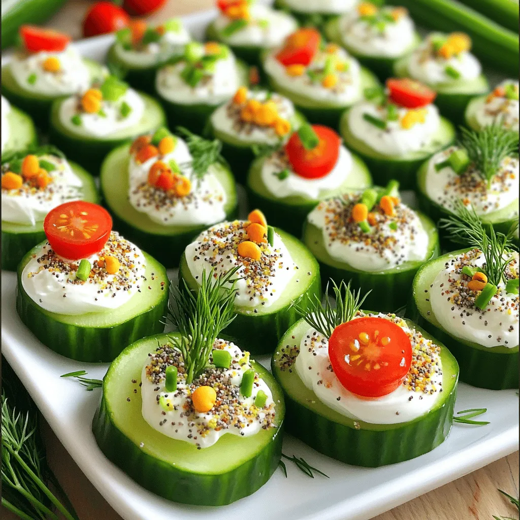 Everything Bagel Cucumber Bites work well for many occasions. They make a great snack for parties and gatherings. Serve them at brunch with friends or family. They are perfect for picnics or casual get-togethers. You can also bring them to potlucks. Their bright colors and flavors make them a hit at any event. Try serving them at your next celebration!
