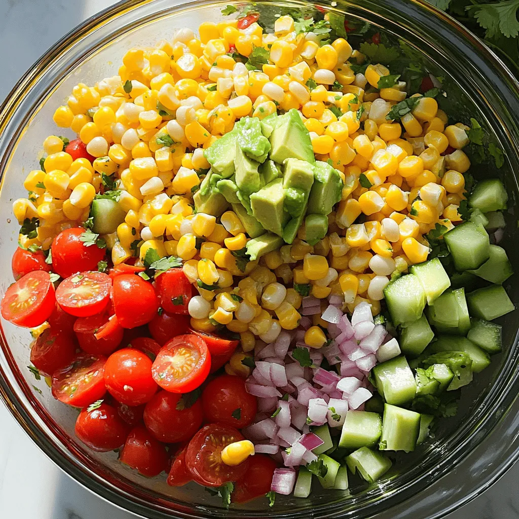 Fresh corn is the star of this dish. It should be sweet and juicy. Look for corn with bright green husks and plump kernels. The other vegetables and herbs add crunch and color. Each ingredient plays a role in creating a balanced flavor.