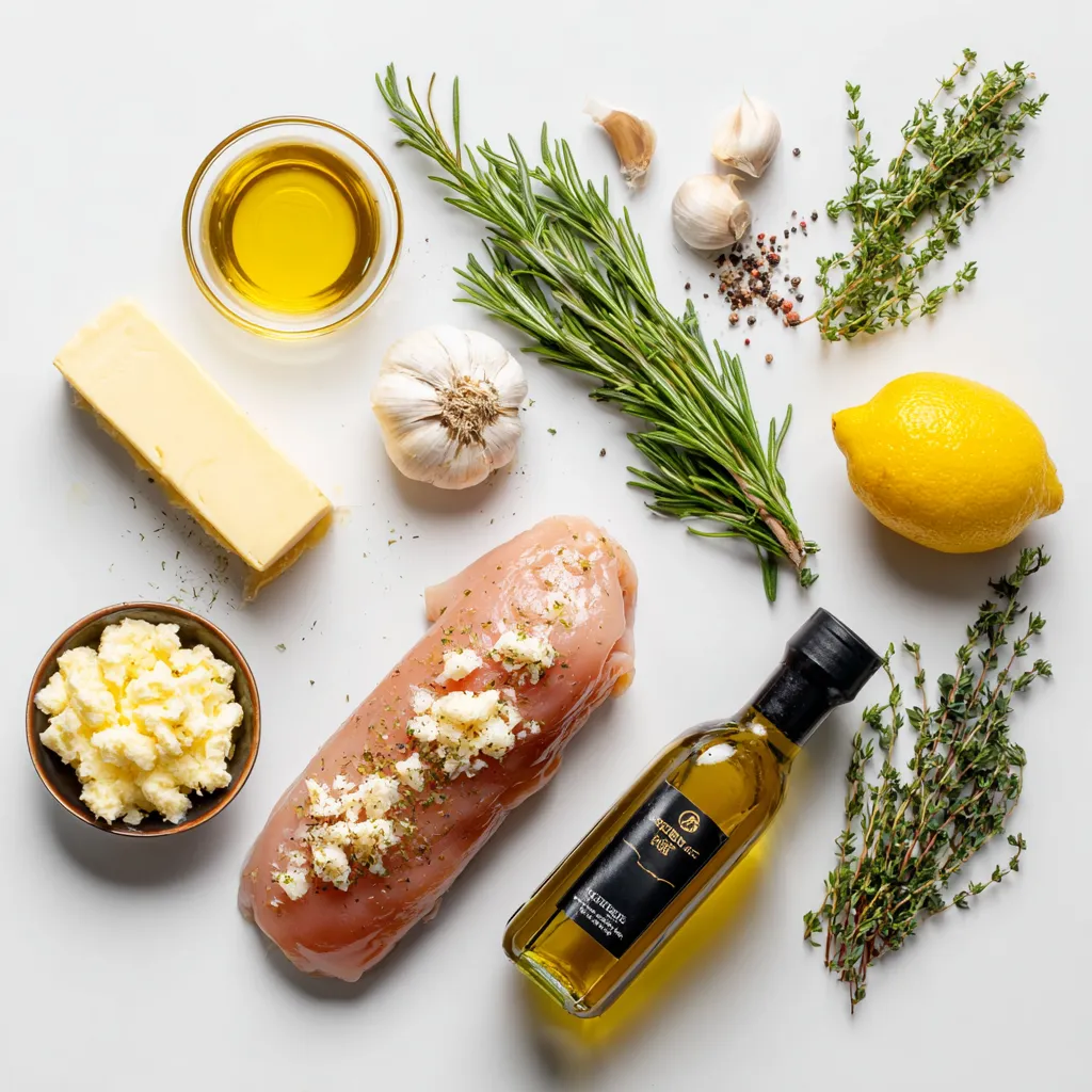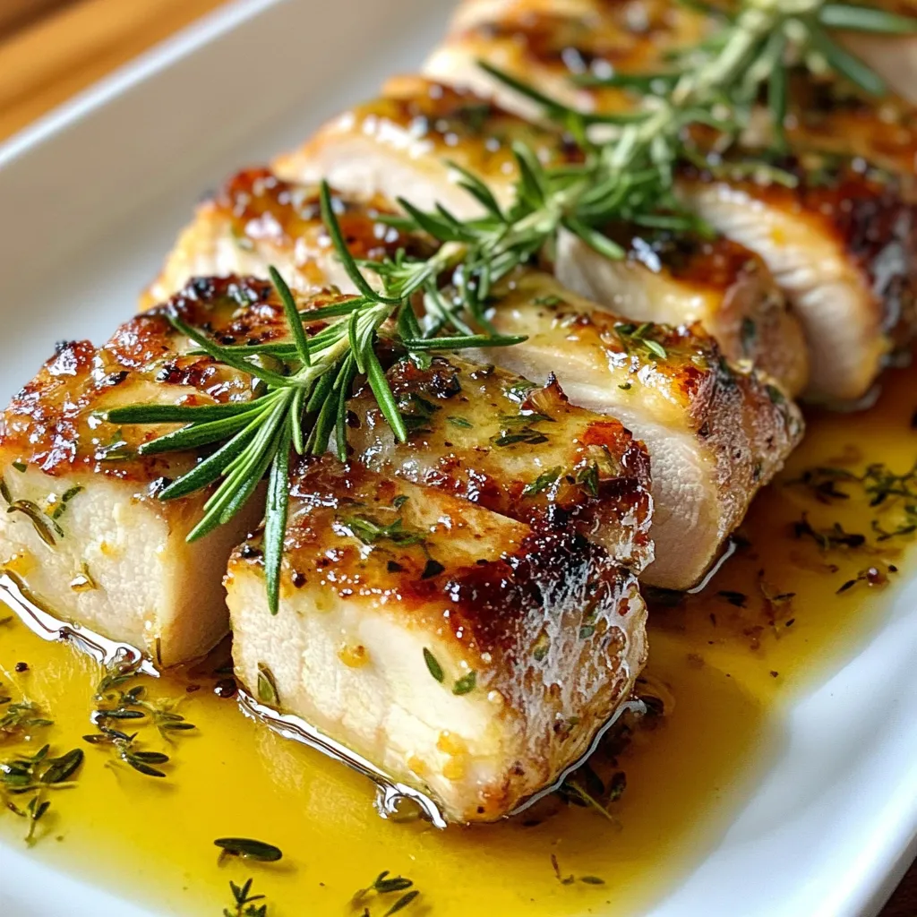 Start by getting your turkey tenderloin ready. Take 1.5 pounds of turkey tenderloin and pat it dry with paper towels. This step helps brown the meat well. Now, season it with salt and pepper. This adds great flavor to the dish. Next, make your garlic butter mixture. In a small bowl, mix 2 tablespoons of melted unsalted butter, 5 minced garlic cloves, 1 tablespoon of chopped rosemary, 1 tablespoon of chopped thyme, 1 teaspoon of lemon juice, salt, and pepper. This blend gives a burst of flavor.