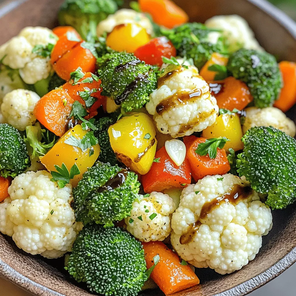 ![To make Garlic Herb Roasted Vegetables, gather these fresh veggies: - 2 cups broccoli florets - 2 cups cauliflower florets - 1 cup baby carrots, halved - 1 cup bell peppers, diced (mixed colors) These vegetables bring color and crunch to your dish. You can use other veggies too, like zucchini or Brussels sprouts. Just keep in mind that each vegetable has its own cooking time. Next, you need the right spices to boost flavor: - 4 cloves garlic, minced - 3 tablespoons olive oil - 1 teaspoon dried thyme - 1 teaspoon dried oregano - 1 teaspoon smoked paprika - Salt and pepper to taste - Fresh parsley, chopped (for garnish) These spices add depth and warmth. Garlic gives a nice punch, while smoked paprika adds a lovely smokiness. Having the right tools makes cooking easier. Here’s what you’ll need: - A large mixing bowl - A small bowl for mixing spices - A whisk or spoon for blending - A large baking sheet - Parchment paper The parchment paper keeps your veggies from sticking. It also makes cleaning up a breeze. You can find the full recipe in the article to help you get started on this delicious dish! First, wash all your vegetables well. Cut the broccoli and cauliflower into small florets. Halve the baby carrots for even cooking. Dice the bell peppers into small pieces. This way, they will roast nicely. It’s important to keep the sizes similar. This helps them cook evenly. Place all the chopped vegetables in a large mixing bowl. In a small bowl, add the olive oil. Mince the garlic and add that too. Then, sprinkle in the dried thyme, oregano, and smoked paprika. Don’t forget to season with salt and pepper. Whisk everything together until it blends well. This marinade will give the veggies a great flavor. Now, pour the marinade over the vegetables. Toss them gently to coat every piece well. Spread the seasoned vegetables on a baking sheet lined with parchment paper. Make sure they are in a single layer. Preheat your oven to 425°F (220°C) and roast for 25-30 minutes. Stir the veggies halfway through for even cooking. They should be tender and slightly caramelized when done. After roasting, let them cool for a minute. Transfer them to a serving platter and garnish with fresh parsley. For the full recipe, check out the link provided. To get the best roasted vegetables, cut them into even sizes. This helps them cook evenly. Use fresh, vibrant veggies for the best taste. Preheat your oven to 425°F (220°C) to ensure a nice caramelization. Spread the vegetables in a single layer on the baking sheet. This allows them to roast instead of steam. You can add more flavor by using different spices. Try adding chili flakes for heat or lemon zest for a bright touch. You can also mix in some cherry tomatoes or asparagus for variety. A splash of balsamic vinegar before serving adds a nice tang. Don’t forget to use the garlic herb marinade from the Full Recipe; it brings out the best in the veggies. Presentation makes your dish more inviting. Serve the roasted vegetables in a colorful bowl. Drizzle a touch of balsamic reduction on top for a fancy look. Garnish with fresh parsley to add a pop of color. Arrange the vegetables so they look vibrant and appealing. A well-presented dish makes everyone want to dig in! {{image_2}} You can mix up your vegetables for Garlic Herb Roasted Vegetables. Try adding zucchini, asparagus, or Brussels sprouts. Each vegetable brings its own flavor. This change can keep your meals exciting. You can also use seasonal veggies for freshness. Just remember to cut them into similar sizes for even cooking. Feel free to switch herbs based on what you have. Instead of thyme, you can use rosemary or basil. These herbs add unique tastes. You can also try fresh herbs if you prefer. Fresh herbs can give a bright flavor that dried herbs might lack. Just chop them finely and add them at the end of cooking. You can easily adjust this dish for different diets. If you need a vegan option, this recipe is already plant-based. For gluten-free eaters, no worries—this recipe has no gluten. If you want to add protein, consider adding chickpeas or tofu. Simply toss them in with the vegetables. Check the [Full Recipe] for more ideas on how to make it your own! To keep your garlic herb roasted vegetables fresh, let them cool first. Place them in an airtight container. Store in the fridge for up to four days. This way, you can enjoy them again! When you're ready to eat leftovers, you can reheat them easily. Preheat your oven to 350°F (175°C). Spread the veggies on a baking sheet. Bake for about 10-15 minutes, or until warm. You can also use a microwave. Heat on high for 1-2 minutes. If you want to save some for later, freezing is a great option. Follow these steps: - Let the vegetables cool completely. - Spread them on a baking sheet in a single layer. - Freeze for about an hour. - Transfer to a freezer-safe bag or container. - Label with the date. Frozen roasted vegetables can last for up to three months. When you want to use them, thaw in the fridge overnight before reheating. For the full recipe, check the complete instructions earlier. Yes, you can use frozen vegetables. They are convenient and save time. However, frozen vegetables may cook faster. I recommend reducing the roasting time by about 5-10 minutes. Check them often to avoid overcooking. The vegetables are done when they are tender and slightly browned. You can poke them with a fork. If the fork goes in easily, they are ready. Look for a nice caramel color on the edges. This adds flavor and makes them tasty. Garlic Herb Roasted Vegetables pair well with many dishes. You can serve them with grilled chicken or fish. They also go great with quinoa or rice. For a vegetarian option, serve them with pasta or a fresh salad. These vegetables add color and flavor to your meal. For the complete recipe, check out the Full Recipe section above. Roasting is a simple way to bring out flavors in vegetables. You learned about key ingredients