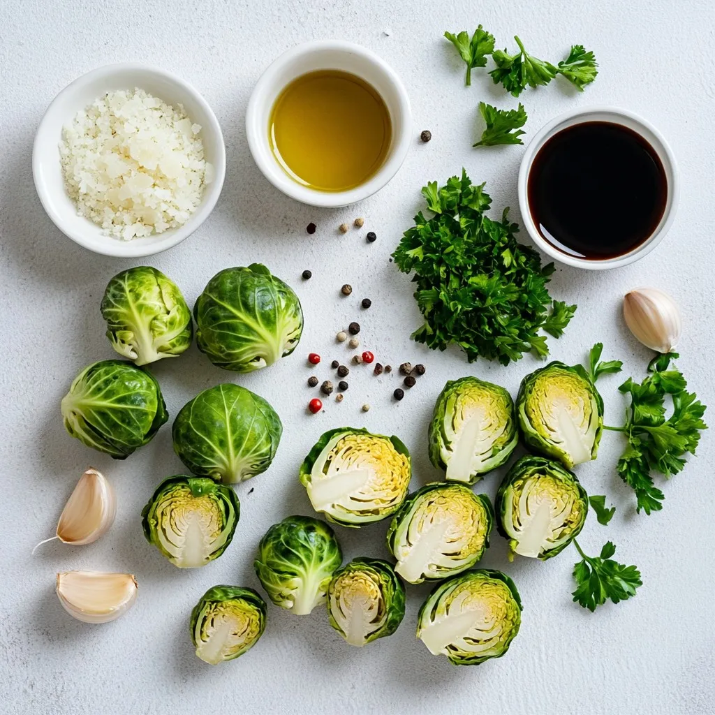 To make Garlic Parmesan Brussels sprouts, you need fresh ingredients. Begin with one pound of Brussels sprouts. Trim and halve them for even cooking. Garlic adds a punch of flavor, so use four cloves, minced well. Olive oil helps the sprouts crisp up; three tablespoons will do.