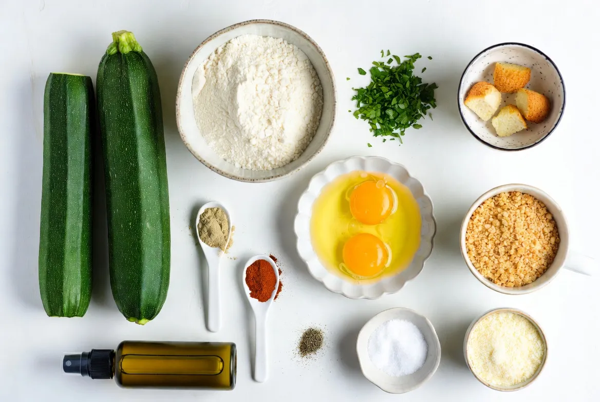 When making Garlic Parmesan Zucchini Fries, you need fresh, simple ingredients. Start with two medium zucchinis. Cut them into fries for the best shape and texture. The next step is the flour mixture. Combine all-purpose flour with garlic powder and paprika. This mix adds depth to your fries.
