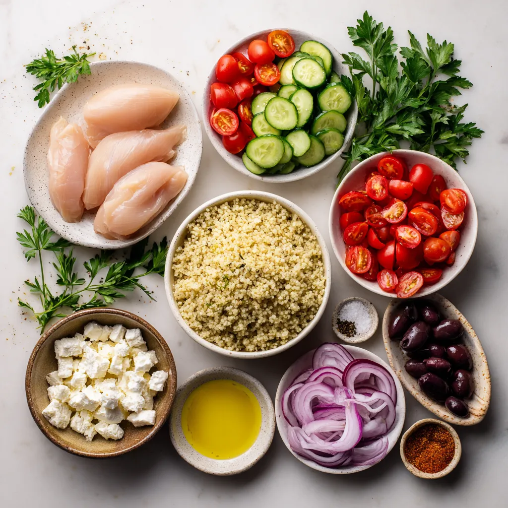To create the best Greek Chicken Gyro Bowls, start with fresh chicken breasts. The marinade gives the chicken its bold flavor. Use olive oil, oregano, garlic powder, and smoked paprika. These spices work together to bring bright flavors. Add salt and pepper to taste.