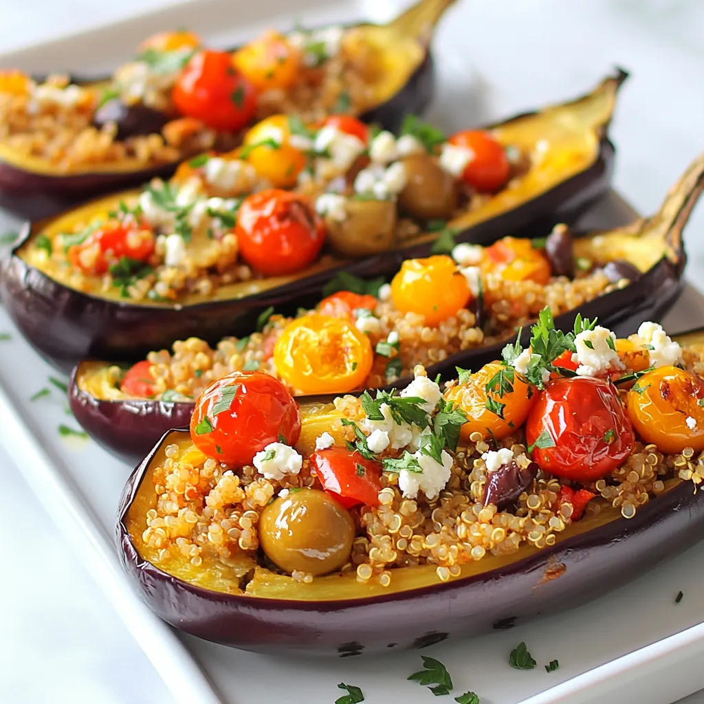 - Delicious Flavor Profile: This recipe combines the earthy flavors of eggplant, savory quinoa, and tangy feta, creating a delightful Mediterranean experience in every bite.