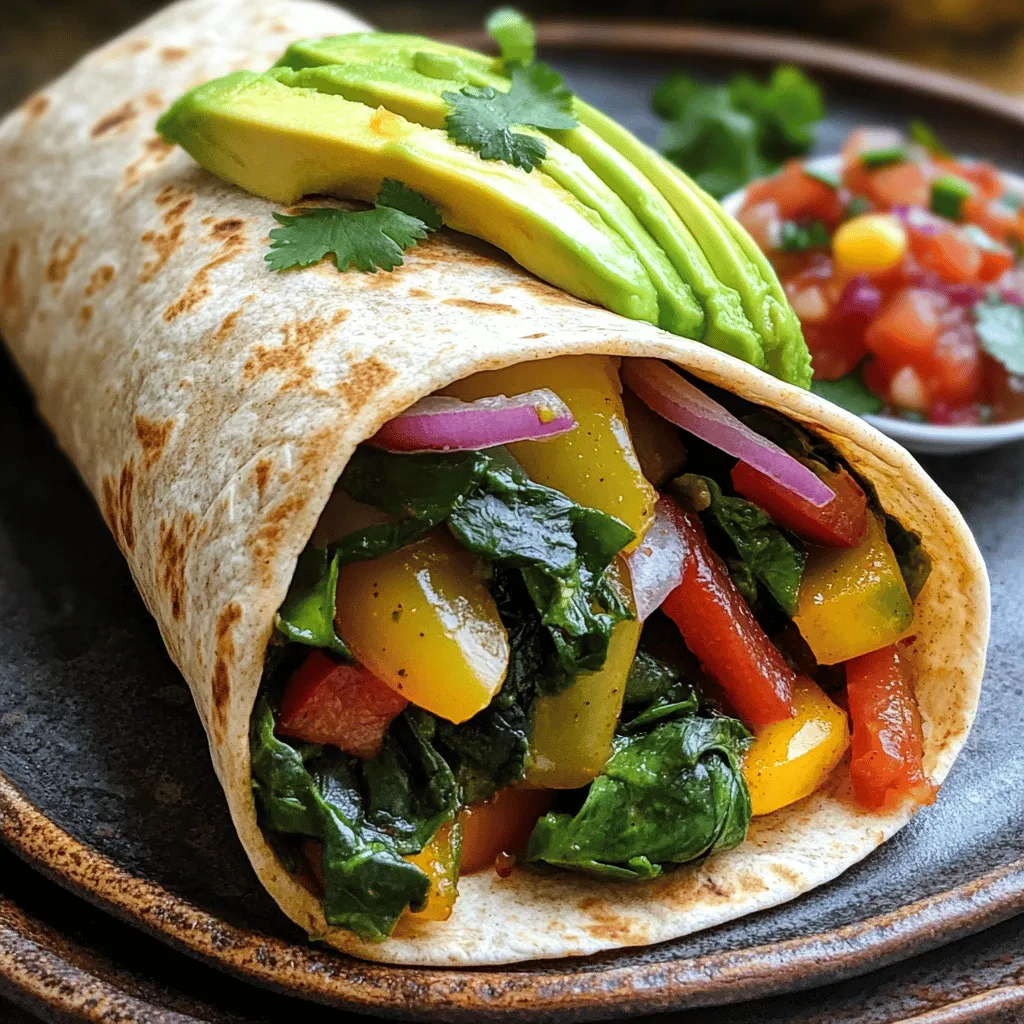 - 1 large whole wheat tortilla - 1/2 cup black beans, rinsed and drained - 1 small bell pepper, diced (any color) - 1/4 cup red onion, finely chopped - 1 cup fresh spinach - 2 eggs, beaten The large whole wheat tortilla serves as the base. It gives you fiber and helps keep you full. Black beans add protein and a nice texture. Rinse them well to remove excess sodium. The fresh veggies, like bell pepper, red onion, and spinach, bring color and nutrients to your meal. Diced bell pepper adds crispness, while red onion gives a hint of sweetness. Spinach packs a nutrient punch and cooks quickly. - 1/4 teaspoon cumin - 1/4 teaspoon smoked paprika - Salt and pepper to taste - 1/4 avocado, sliced (optional) - Fresh cilantro for garnish (optional) - Salsa (optional, for serving) Cumin and smoked paprika enhance the flavor of your burrito. They add warmth and depth that make each bite delightful. Adjust the salt and pepper to suit your taste. Avocado adds creaminess and healthy fats. Fresh cilantro brightens the dish, while salsa adds a spicy kick if you like heat. Each ingredient in the burrito brings health benefits. Whole wheat tortillas provide fiber, which aids digestion. Black beans are high in protein and iron. Bell peppers are rich in vitamins A and C. Red onions have antioxidants, and spinach is low in calories but high in nutrients. Eating a healthy breakfast like this burrito fuels your body. It gives you energy for the day ahead. Skipping breakfast can lead to cravings later. Enjoying this burrito helps you stay satisfied and focused. For the full recipe, check out the details above for the perfect start to your day! - SautΓ©ing vegetables in the skillet: Heat a non-stick skillet over medium heat. Add a splash of olive oil. Toss in the diced bell pepper and red onion. Cook them for about 3-4 minutes until soft. Next, add the corn and spinach. Stir until the spinach wilts, which takes about 1-2 minutes. - Incorporating the eggs: Push the veggie mix to one side of the skillet. Pour the beaten eggs into the empty space. Season with cumin, smoked paprika, salt, and pepper. Scramble the eggs until they are fully cooked. Mix them together with the veggies in the skillet. - Preparing the tortilla: In another skillet, warm the whole wheat tortilla for about 20 seconds on each side. This makes it soft and easy to roll. - Layering ingredients on the tortilla: Place the warmed tortilla flat on a clean surface. In the center, layer the black beans, followed by the veggie and egg mix. Top it off with slices of avocado. - Folding techniques for the perfect roll: Fold the sides of the tortilla inward, then roll it up from the bottom. Tuck in the filling as you go to keep everything inside. - Optional steps for toasting: Place the burrito seam-side down in the skillet. For extra crispiness, toast it for 1-2 minutes on each side. This adds a nice crunch. - Best serving practices: Slice the burrito in half before serving. Garnish with fresh cilantro and serve with salsa if you like. Enjoy your Healthy Veggie Breakfast Burrito packed with flavor! For the full recipe, check out the details above. To get the best scrambled eggs, beat them well before cooking. This adds air and makes them fluffy. Cook them over medium heat. Stir gently to keep them soft. Remove them from the heat just before they finish cooking. They will continue to cook from the residual heat. For sautΓ©ing veggies, use a non-stick skillet. Start with a little olive oil. Heat it over medium heat. Add diced bell peppers and red onion. Cook until soft, about 3-4 minutes. Then add corn and spinach. Stir often to avoid burning. Cook until the spinach wilts, about 1-2 minutes. This keeps the veggies bright and fresh. Make ahead by prepping the veggies and beans. You can store them in the fridge for up to three days. Just make sure to keep them in an airtight container. This saves time on busy mornings. For reheating, heat the burrito in a skillet. This keeps it crispy. You can also use the microwave. Just cover it with a damp paper towel to keep it moist. Heat for about 30 seconds, then check if it's warm. Pair your burrito with sides for a full meal. Fresh fruit or yogurt works great. You can also serve it with a small salad. This adds color and nutrients. For a complete breakfast spread, think about adding a smoothie or a drink. A green smoothie or fresh juice pairs well. You can also add a small bowl of salsa for dipping. These ideas make your meal fun and filling. For the full recipe, check out the Healthy Veggie Breakfast Burrito. {{image_2}} You can swap in many vegetables for your burrito. Try zucchini, mushrooms, or kale. These options add flavor and texture. Seasonal swaps work great too. In spring, add asparagus or peas. In winter, use roasted root veggies like sweet potatoes or carrots. This keeps your breakfast fresh and exciting. Want a protein boost? Try adding tofu or tempeh. Both are excellent sources of plant protein. Just sautΓ© them with your veggies for a hearty meal. You can also use vegetarian sausage. Many brands offer tasty options that fit perfectly in your burrito. Choose what you love best! Feel free to get creative with spices. Add chili powder, garlic powder, or even a dash of turmeric. Fresh herbs like cilantro or parsley enhance the flavors, too. For a spicy kick, drizzle your burrito with hot sauce or sriracha. These simple tweaks turn your breakfast burrito into a flavorful feast. For the full recipe, check out the Healthy Veggie Breakfast Burrito πŸ₯‘. To keep your burritos fresh, wrap them tightly in foil or plastic wrap. You can also place them in an airtight container. This method helps to prevent drying out. Store them in the fridge for up to 3 days. If you want to keep them longer, freeze them for up to 3 months. Thaw frozen burritos in the fridge before reheating. When it’s time to enjoy your burrito, you have two great options. The microwave is quick and easy. Wrap the burrito in a damp pap