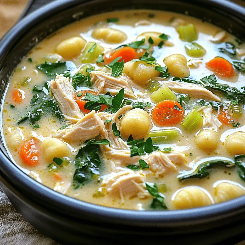 Start by dicing the chicken into small pieces. This helps it cook well. Next, dice the onion, carrots, and celery. Make sure to mince the garlic finely. These veggies add flavor and texture to the soup. If using frozen gnocchi, no need to thaw. They will cook perfectly in the soup.