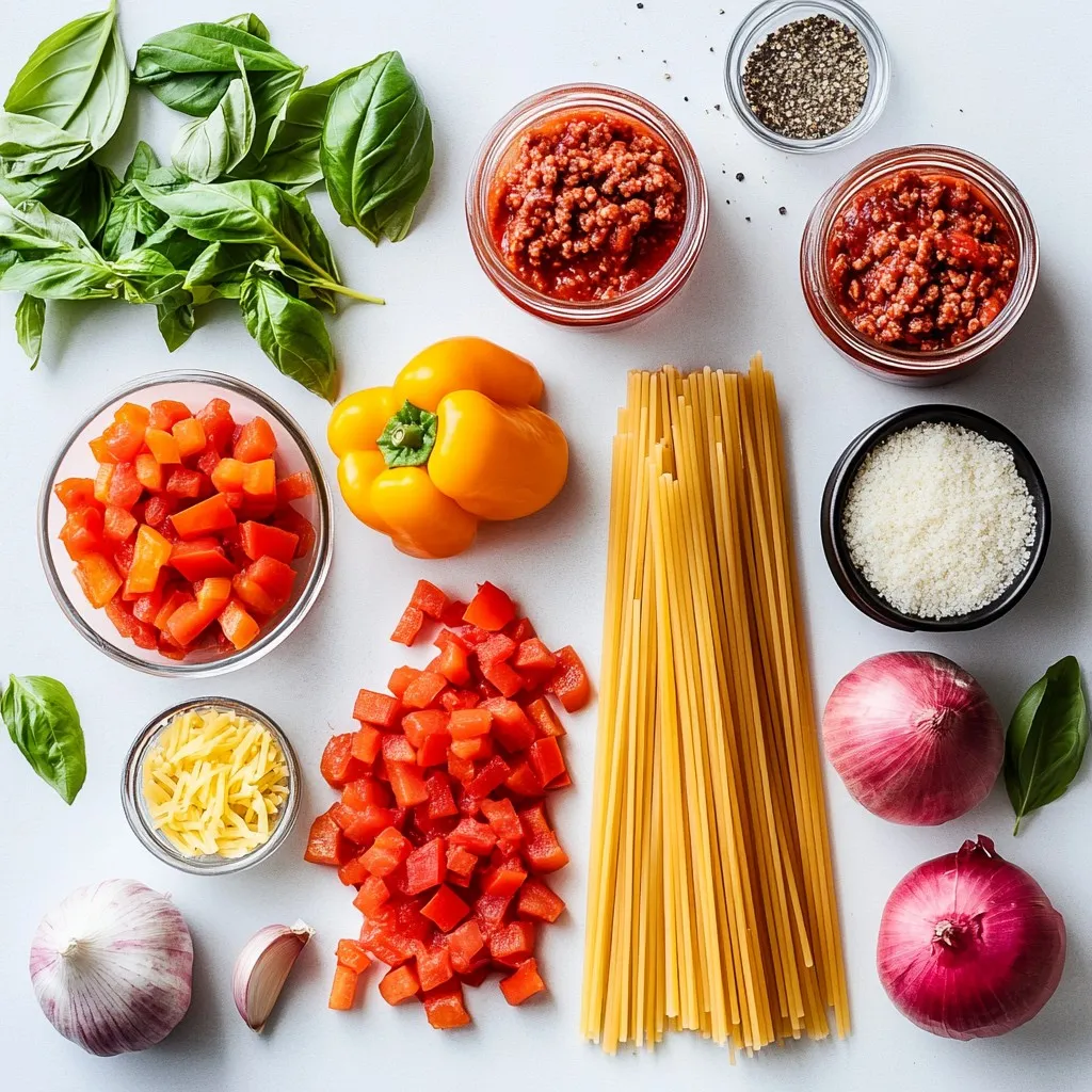 - 1 pound ground beef (or turkey for a lighter option) - 1 small onion, diced - 2 garlic cloves, minced - 1 bell pepper, diced (any color) - 1 can (15 oz) crushed tomatoes - 1 can (8 oz) tomato sauce - 8 ounces spaghetti (uncooked) The main ingredients form the base of our dish. Ground beef or turkey gives it a hearty flavor. The diced onion, garlic, and bell pepper add freshness and depth. Crushed tomatoes and tomato sauce create a rich, thick sauce that clings to the spaghetti. - 2 cups beef broth - 2 teaspoons Italian seasoning - 1 teaspoon dried basil - Salt and pepper to taste Seasoning is key to making your sauce pop. The beef broth adds moisture and flavor. Italian seasoning and dried basil bring in the classic Italian taste. Don't forget to add salt and pepper to balance everything out. - Grated Parmesan cheese - Fresh basil leaves Toppings elevate your meal. Grated Parmesan cheese adds a salty, creamy layer. Fresh basil leaves bring a burst of color and fresh flavor. You can add as much or as little as you like. {{ingredient_image_1}} To start, set your Instant Pot to sautΓ© mode. Once it is hot, add 1 pound of ground beef. Break it apart with a spatula and cook until it turns brown, about 5-7 minutes. If you see excess fat, drain it off carefully. Next, add your chopped onion, minced garlic, and diced bell pepper to the pot. SautΓ© these for 2-3 minutes. You want the onions to become soft and translucent. This step builds a rich flavor base for your sauce. Now it’s time to pour in the crushed tomatoes and tomato sauce. Add 2 cups of beef broth, 2 teaspoons of Italian seasoning, 1 teaspoon of dried basil, and salt and pepper to taste. Mix everything well. This combination creates a delicious sauce that coats the spaghetti perfectly. Take 8 ounces of uncooked spaghetti and break it in half. Gently push the pieces into the sauce mixture. Make sure the pasta is mostly covered by the sauce, but avoid stirring. This helps the spaghetti cook evenly. Close the lid of the Instant Pot and set it to manual high pressure. Set the timer for 8 minutes. Before you start, ensure the valve is set to sealing. This traps the steam inside, cooking the spaghetti perfectly. Once the cooking time is done, carefully do a quick release of pressure. Turn the valve to venting, being cautious of hot steam. When it is safe, open the lid and stir the spaghetti and sauce together. If the dish looks too thick, add a splash of beef broth and stir again. Your meal is now ready to serve! - How to prevent pasta from sticking To stop pasta from sticking, break the spaghetti in half. This helps it fit better in the pot. Place the pasta gently in the sauce mix without stirring. The sauce will keep it moist and help it cook evenly. - Tips on browning meat Start by heating your Instant Pot on sautΓ© mode. Once hot, add the ground beef or turkey. Let it cook without moving it for a few minutes. This helps to brown the meat. Stir it only after a good crust forms. - Suggestions for additional spices You can boost the flavor by adding red pepper flakes for heat. A pinch of smoked paprika adds depth. For a sweeter touch, try a dash of sugar. These spices make your dish even more exciting. - Benefits of using fresh herbs Fresh basil is a game changer. It adds a bright flavor that dried herbs can't match. Use it as a garnish right before serving. You can also mix it in for a fresh taste throughout the dish. - Overcooking the pasta It's easy to overcook pasta in the Instant Pot. Stick to the 8-minute cooking time. If you cook it longer, it may turn mushy. Remember, the pasta continues to cook even after you release the pressure. - Incorrect pressure release Always do a quick release carefully. Turn the valve to venting, but keep your face away from the steam. If you don’t release the pressure correctly, it can lead to uneven cooking. Safety first! Pro Tips Use Lean Meat: Opt for lean ground beef or turkey to reduce fat content and make the dish lighter without sacrificing flavor. Don’t Stir the Spaghetti: When adding the spaghetti to the sauce, do not stir. This prevents it from clumping together and ensures even cooking. Adjust Thickness: If the sauce is too thick after cooking, add a splash of beef broth or water and stir to reach your desired consistency. Garnish for Flavor: Fresh basil and grated Parmesan cheese not only enhance the presentation but also add fresh flavor to the dish. {{image_2}} You can make this dish lighter with a few simple swaps. - Use zucchini noodles instead of regular spaghetti. This adds veggies and cuts carbs. - Choose leaner meats like turkey or chicken. They have less fat and still taste great. These changes keep the dish tasty while making it healthier. You get the same comfort without the guilt. Want a meat-free meal? You have great choices! - Try plant-based meat instead of ground beef. Many brands taste just like real meat. - Add more vegetables like mushrooms, spinach, or carrots. This makes it colorful and full of nutrients. These options are perfect for anyone who wants to enjoy spaghetti and meat sauce without meat. Spice up your dish with these fun ideas! - Add red pepper flakes for a spicy kick. It brings heat and flavor to your sauce. - Swap ground beef for Italian sausage. This gives a rich, savory taste that makes the sauce special. These flavor variations will keep your meal exciting and delicious every time you make it. To keep your spaghetti and meat sauce fresh, place it in a sealed container. This way, it prevents spills and keeps flavors locked in. Store it in the fridge. It will stay good for about 3 to 4 days. If you want to enjoy it later, freezing is a great option. To freeze the dish, let it cool to room temperature first. Then, place it in a freezer-safe container. Make sure to leave some space at the top. The sauce can expand while freezing. It will last in the freezer for up to 3 months. When you’re ready to eat, thaw it overnight in the fridge. You can 