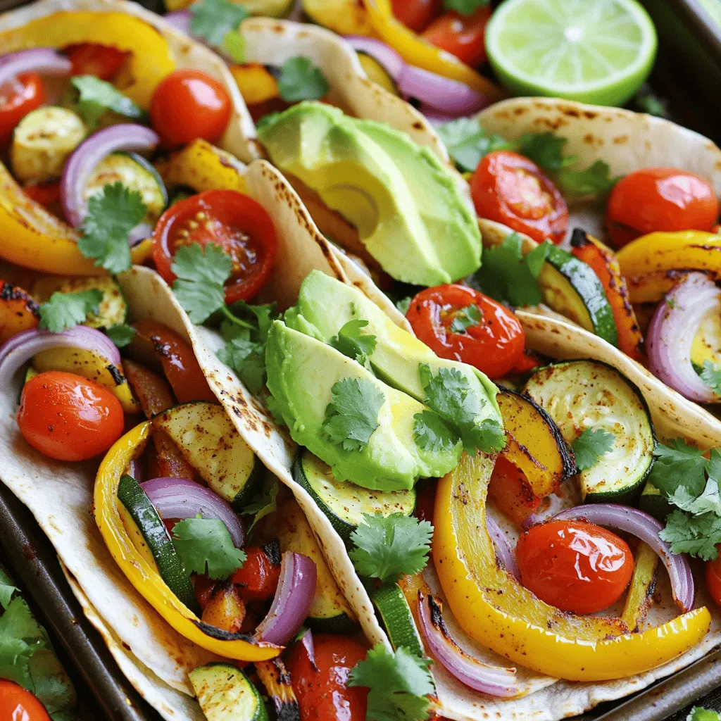 Once the veggies are done, take them out and squeeze fresh lime juice over the top. This adds a bright zing. Warm your tortillas while the veggies cool a bit. Serve the roasted veggies in the tortillas. Top with fresh cilantro and avocado slices for extra flavor.