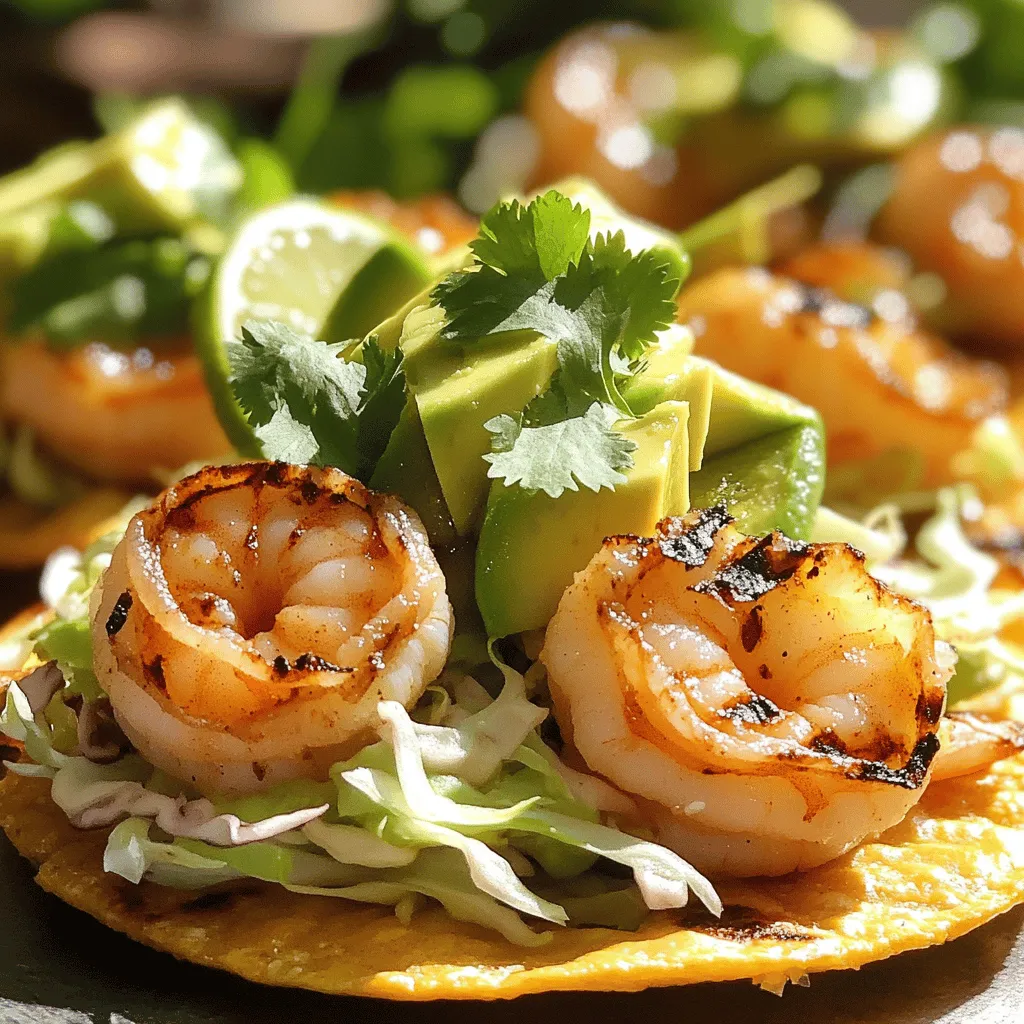 These ingredients work together to create a bright and tasty dish. The shrimp adds protein, while the jalapeños bring heat. Lime zest and juice add a fresh pop. Olive oil helps everything cook nicely. Cumin gives it a warm flavor. With the tostadas, you get a perfect base. Avocado adds creaminess, and cabbage gives a nice crunch. Cilantro finishes it off with fresh notes. Enjoy this tasty mix in every bite!