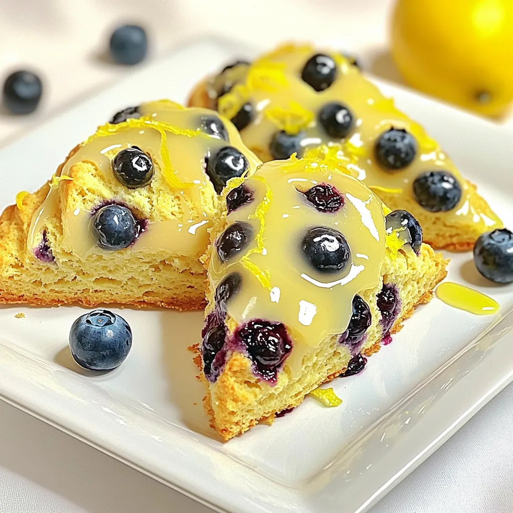 Serve lemon blueberry scones warm. Drizzle them with lemon glaze for extra flavor. You can add fresh blueberries and lemon zest on top. Enjoy them with tea or coffee for a delightful treat. They also make a great breakfast or snack option.