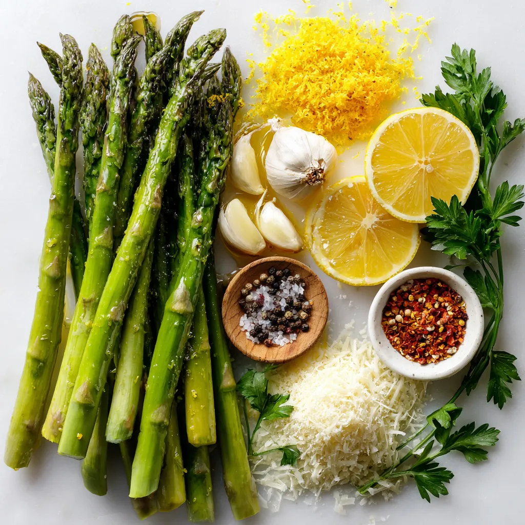 To make Lemon Garlic Roasted Asparagus, you need fresh ingredients. Here’s what you’ll need: